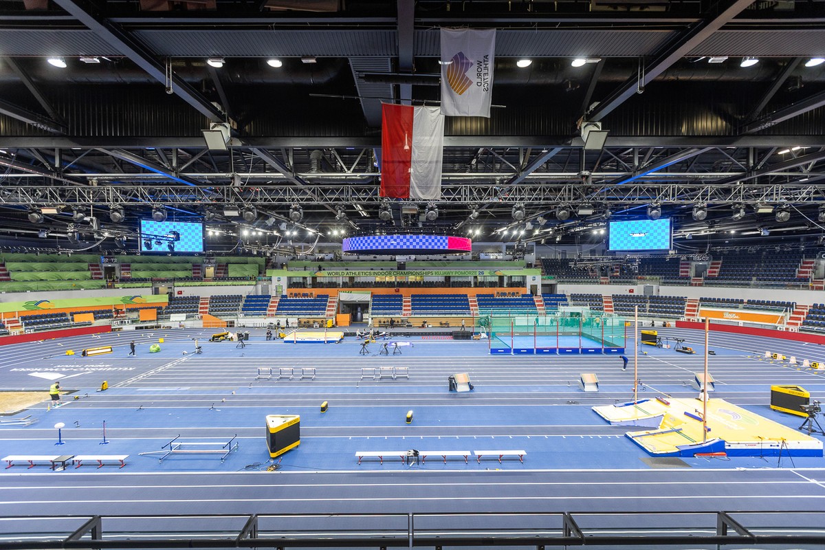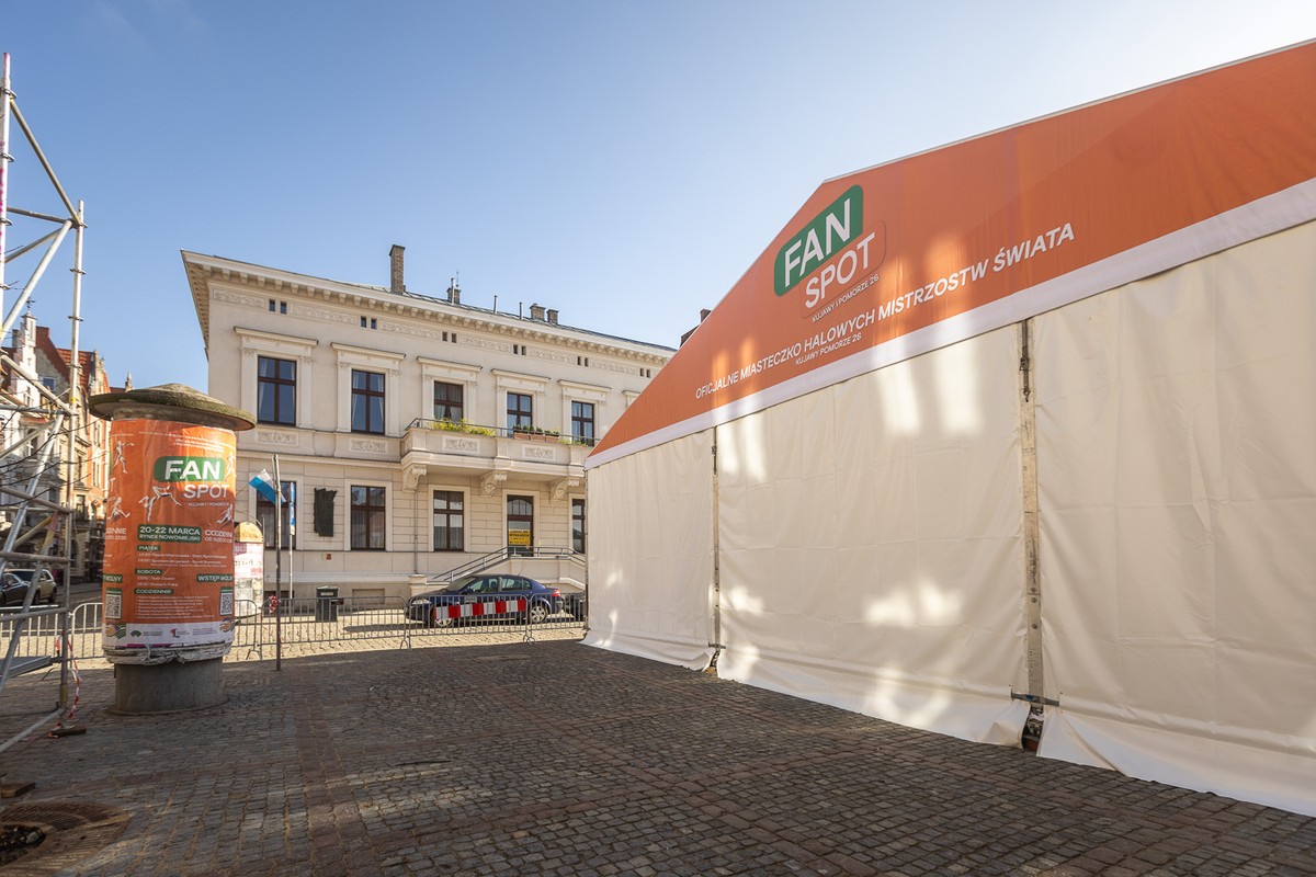 Już tylko dwa dni do Halowych Mistrzostw Świata Kujawy Pomorze 26! Na Rynku Nowomiejskim powstaje strefa kibica, trwają ostatnie przygotowania – montaż sceny, ekranu i stref aktywności dla kibiców. W Kujawsko-Pomorskiem Arenie Toruń czuć już sportowe napięcie i pełną koncentrację. Jesteśmy gotowi na święto królowej sportu na najwyższym poziomie! Zapraszamy do obejrzenia fotorelacji z przygotowań.