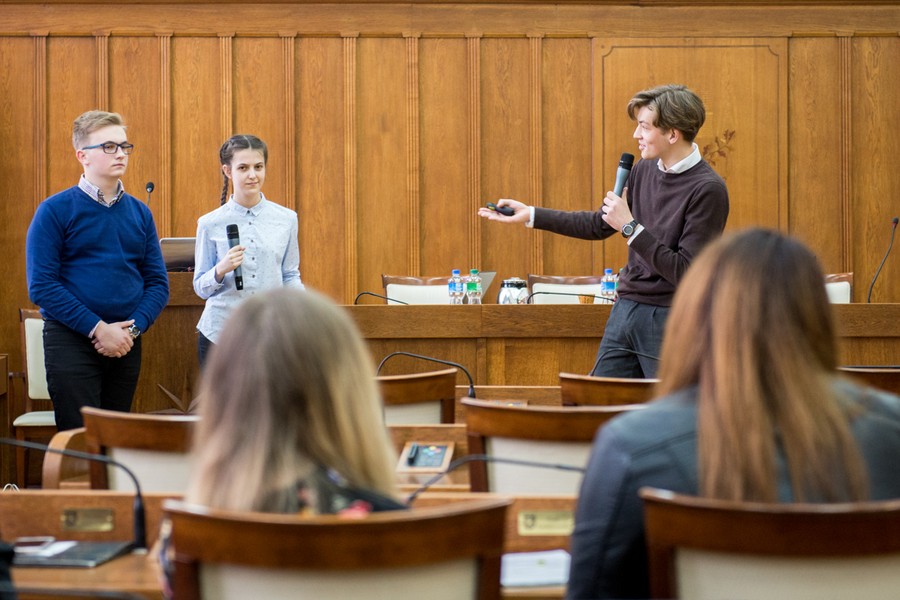 Miejsce I: Weronika Holak, Piotr Augustynowicz i Jędrzej Kopiszka (Liceum Ogólnokształcące nr 6 w Bydgoszczy)