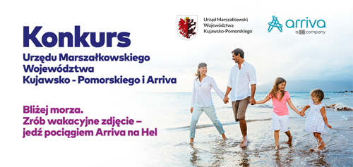 Zapraszamy mieszkańców regionu do udziału w konkursie fotograficznym, organizowanym przez Urząd Marszałkowski Województwa Kujawsko-Pomorskiego i przewoźnika Arriva. Najlepsze zdjęcia z wakacyjnych podróży autobusem lub pociągiem Arrivy zostaną nagrodzone wycieczkami na Hel z dodatkowymi atrakcjami. Zgłoszenia można przesyłać do 7 lipca.