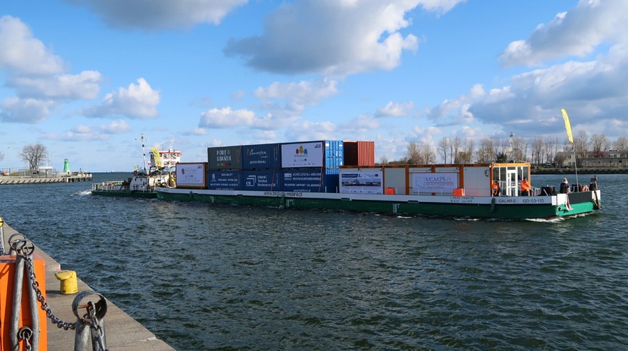 W środę (19 kwietnia) z Portu Gdańsk wyruszył ponad 70-metrowy zestaw rzeczny złożony z pchacza oraz barki załadowanej 20 kontenerami. W ciągu 9 dni pokona 450-kilometrowy odcinek Wisły przez Tczew (19 kwietnia), Grudziądz (20 kwietnia), Bydgoszcz (21-22 kwietnia), Solec Kujawski (22 kwietnia), Toruń (23 kwietnia), Włocławek (24 kwietnia), Płock (25 kwietnia) i Nowy Dwór Mazowiecki – Modlin (26 kwietnia) do Warszawy (27 kwietnia). Powrót zajmie cztery dni, czyli tyle, ile realnie potrzeba na przebycie takiego odcinka.