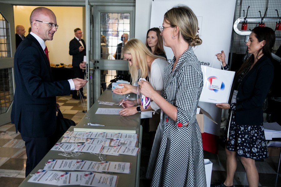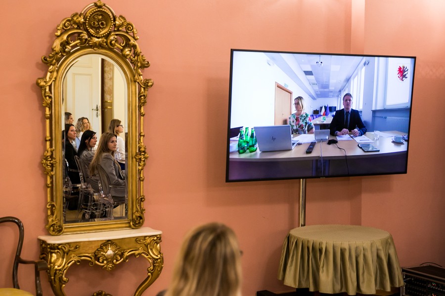 Wieczorem marszałkowie spotkali się na uroczystej kolacja połączonej z prezentacją naszej regionalnej kuchni. Zaprosiliśmy też naszych gości do zwiedzania miasta, proponując miejsca mniej znane, a interesujące (m.in. Niewidzialny Dom, Bunkier Wisła na bulwarze nadwiślańskim i muzeum Dom PRL-u).