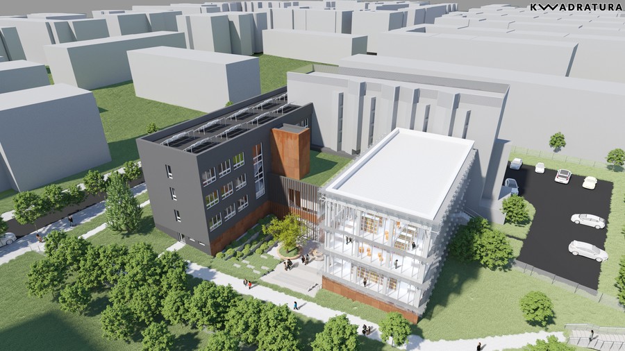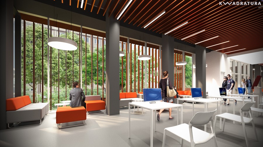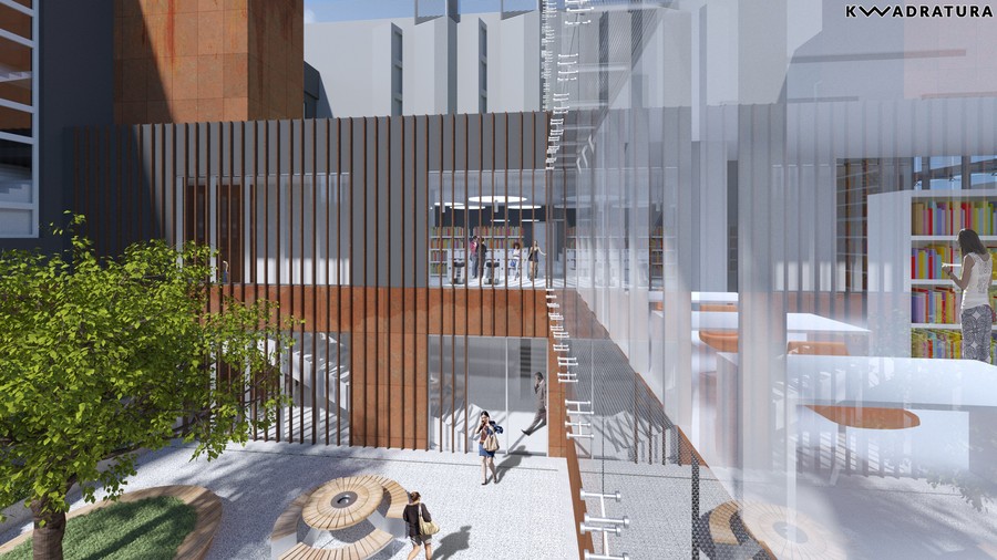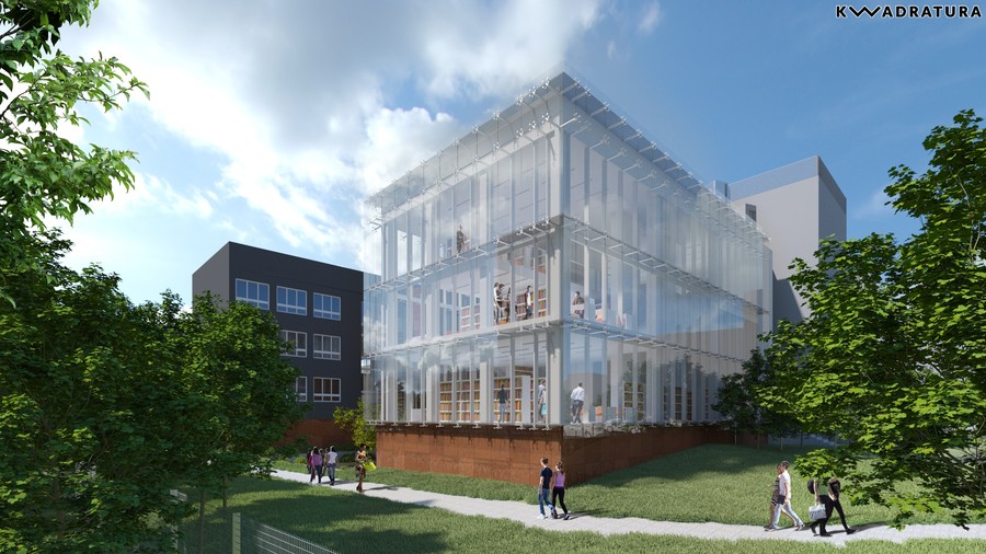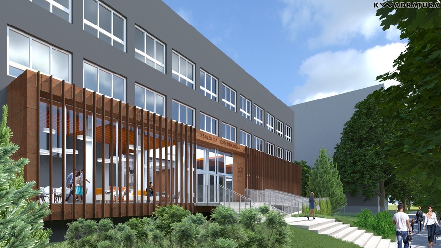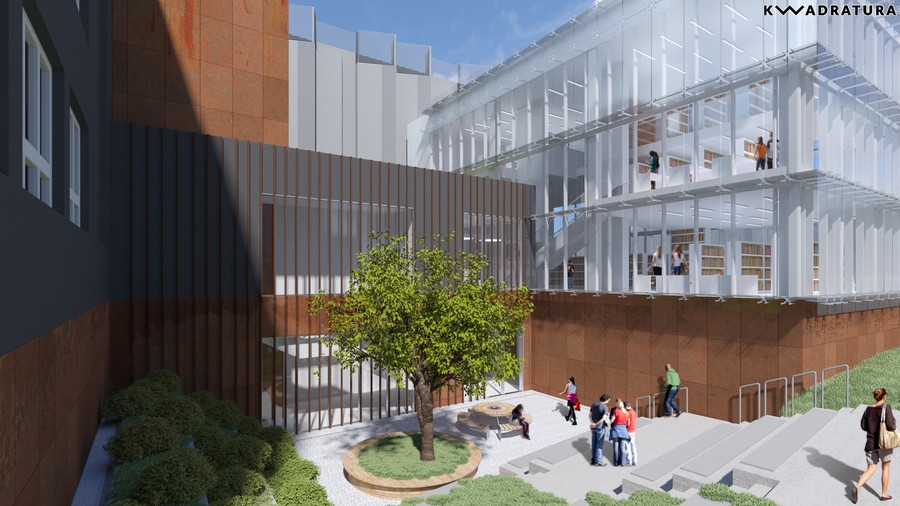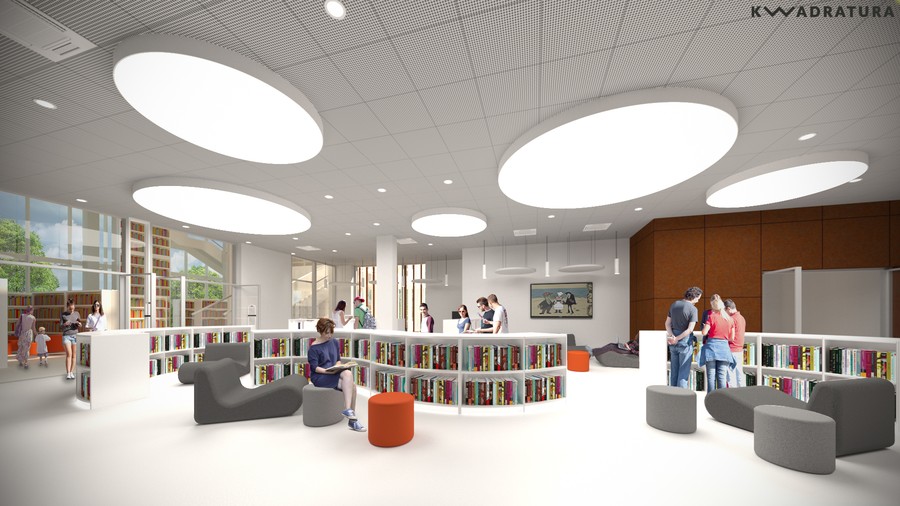 Otwarte przestrzenie, półki z książkami, które można przeglądać, kanapki, na których można z nimi przysiąść, jasne barwy, dużo naturalnego światła dzięki przeszkleniom całych ścian – tak będzie wyglądało nowe skrzydło naszej biblioteki.