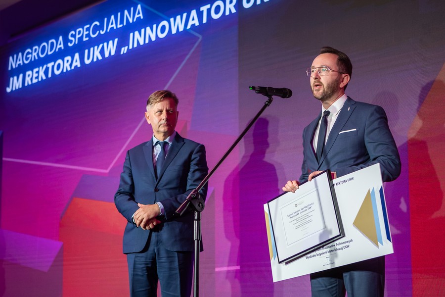 • w kategorii jednostka naukowa/zespół badawczy: zespół badawczy Katedry Inżynierii Materiałów Polimerowych – Wydział Inżynierii Materiałowej – Uniwersytet Kazimierza Wielkiego w Bydgoszczy, za biodegradowalny materiał – biokompozyt o właściwościach przeciwdrobnoustrojowych, zwiększonej wytrzymałości i hydrofobowości, przeznaczony na opakowania lub produkty jednorazowego użytku.