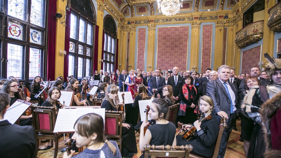 W toruńskim Dworze Artusa odbyło się 15 grudnia tradycyjne spotkanie opłatkowe samorządowców i parlamentarzystów naszego regionu oraz przedstawicieli Kościoła katolickiego, sektora biznesowego i instytucji społeczeństwa obywatelskiego. Oprawę artystyczną przygotowali uczniowie Państwowej Szkoły Muzycznej I i II stopnia im. Juliusza Zarębskiego w Inowrocławiu oraz zespół wokalny Polskie Kwiaty z Brąchnówka w powiecie toruńskim.