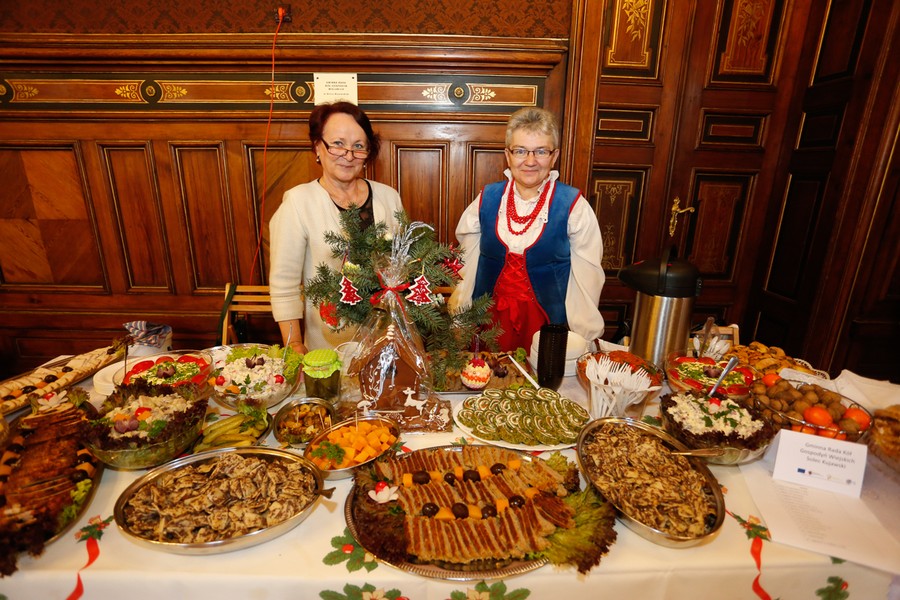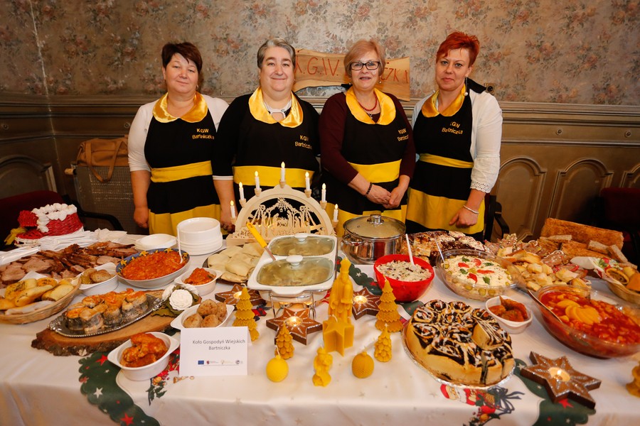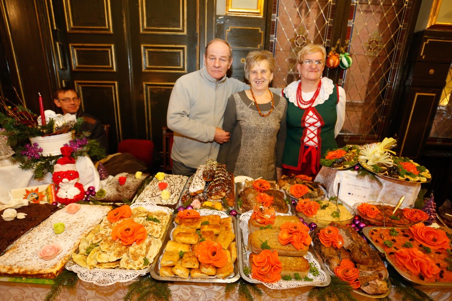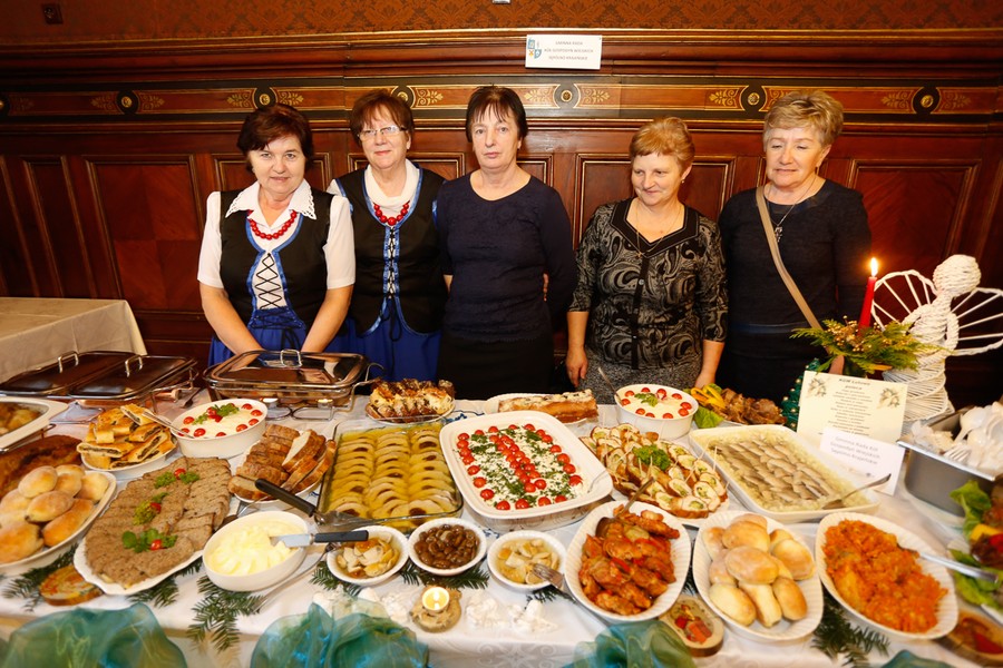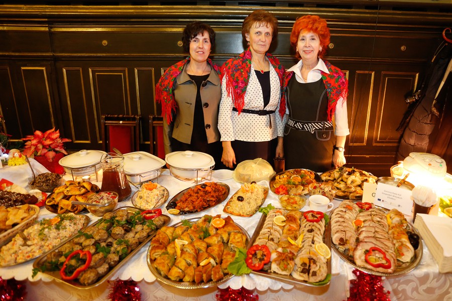 Tradycyjnie wigilii samorządowej towarzyszyła wystawa stołów wigilijnych, które przygotowały członkinie kół gospodyń wiejskich z naszego regionu. W tym roku można było posmakować potraw przygotowanych przez: