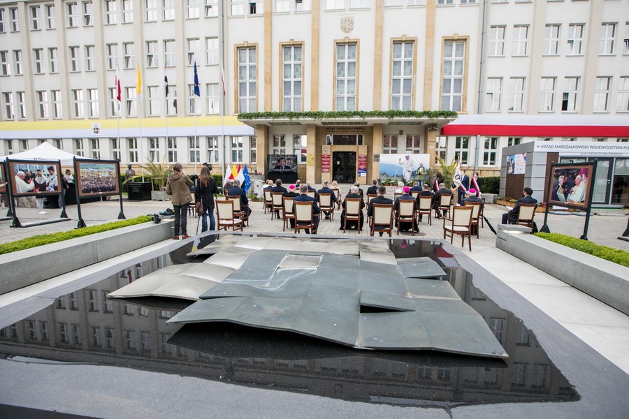 Obchody rozpoczęliśmy w niedzielę (17 maja) widowiskiem „Przyszłość zaczyna się dziś, nie jutro”, transmitowanym z trzech miast Kujawsko-Pomorskiego, które odwiedzał podczas pielgrzymek Jan Paweł II: Włocławka, Bydgoszczy i Torunia. Podczas wydarzenia usłyszeliśmy kameralny koncert tenora Piotra Buszewskiego w katedrze Wniebowzięcia Najświętszej Maryi Panny we Włocławku, a w Filharmonii Pomorskiej w Bydgoszczy utwory „Obój Gabriela” Ennio Morriconego w wykonaniu Orkiestry Kameralnej Capella Bydgostiensis i Mirosława Kulczyńskiego oraz „David danced before the Lord” Duke’a Ellingtona Eljazz Big Band Józefa Eliasza. Na koniec przenieśliśmy się do Torunia. Na Urzędzie Marszałkowskim wyświetlona została projekcja multimedialna, ukazująca ważne wydarzenia z życia papieża.