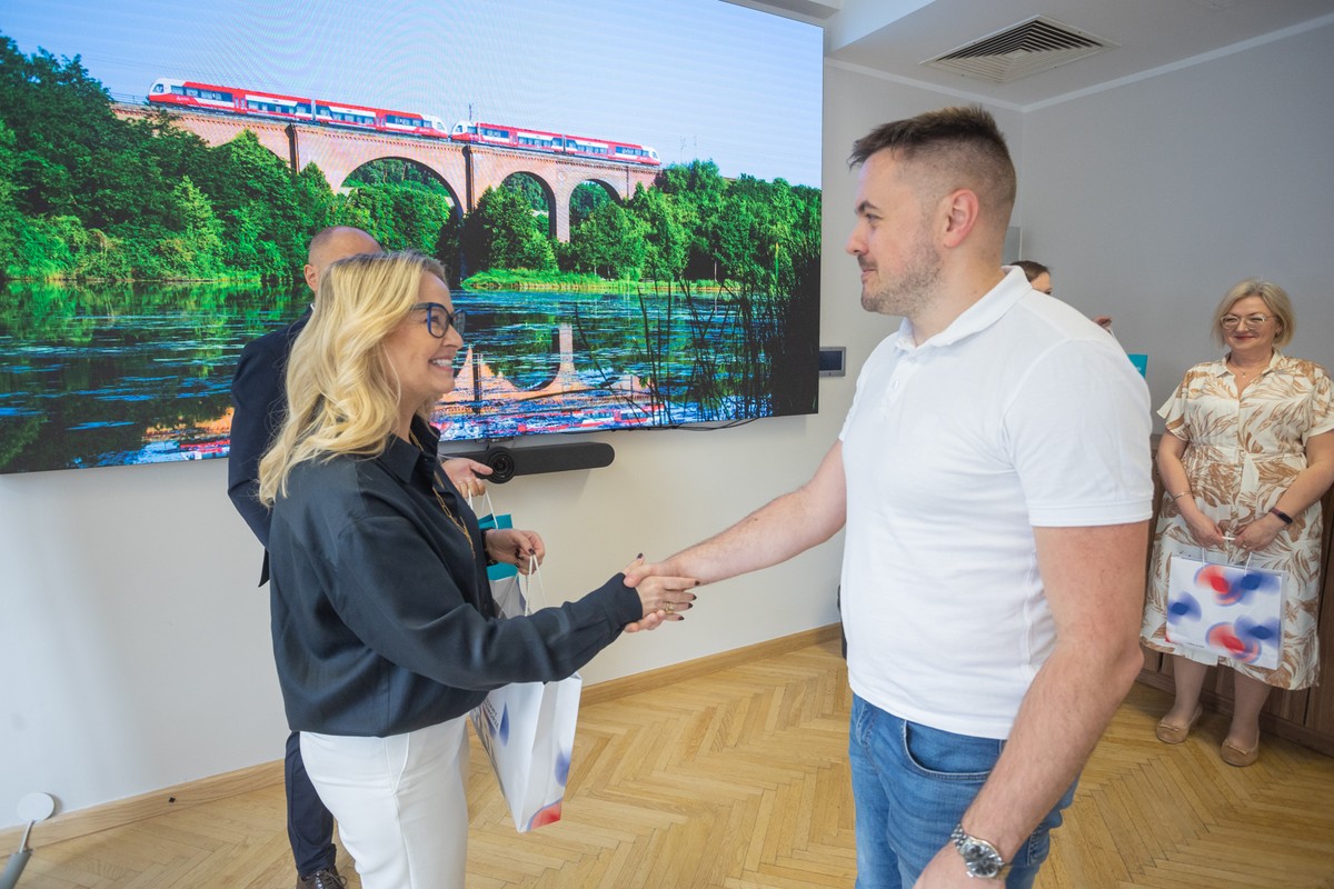 - 14.05.2025 Torun, Urzad Marszalkowski . Rozdanie nagrod w konkursie na nazwe pociagu z Bydgoszczy do Helu Fot. Mikolaj Kuras dla UMWKP