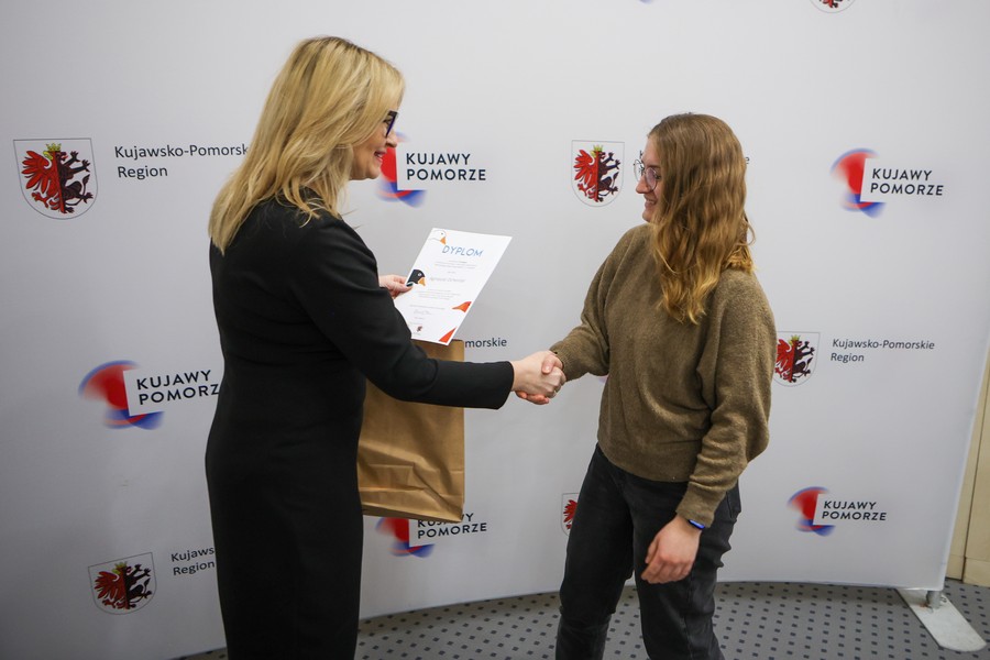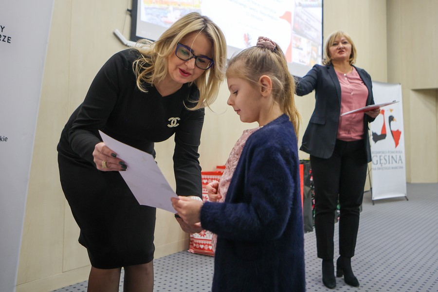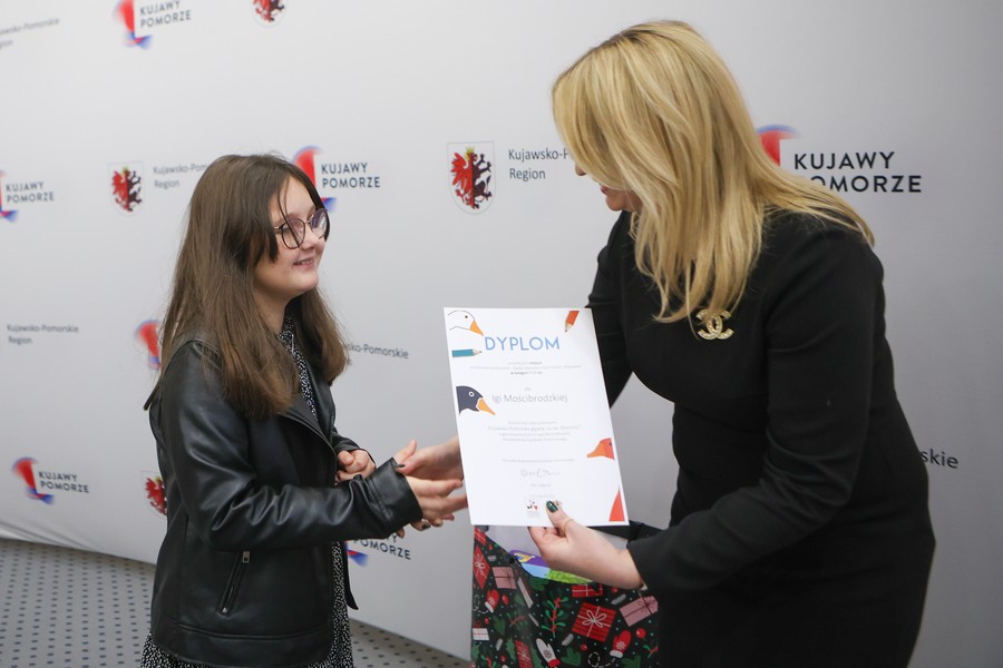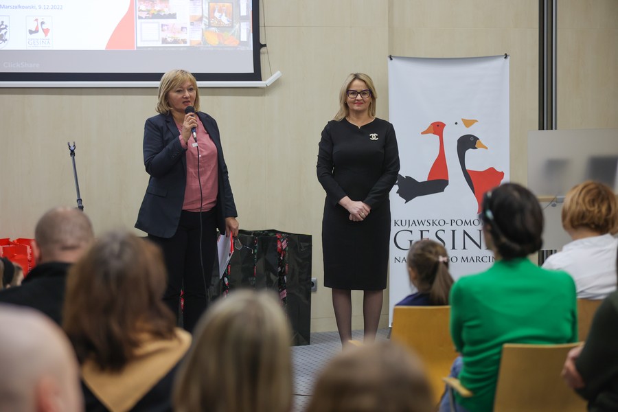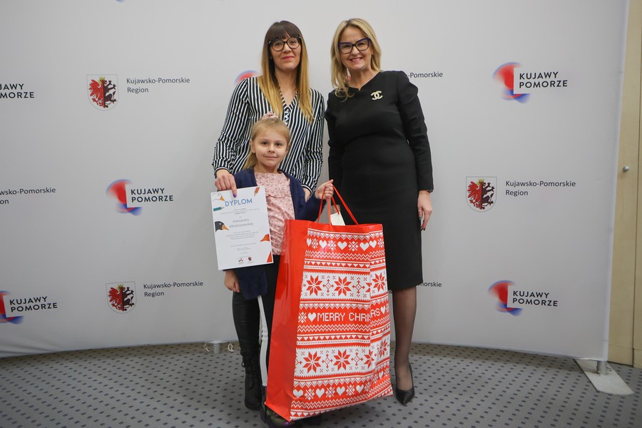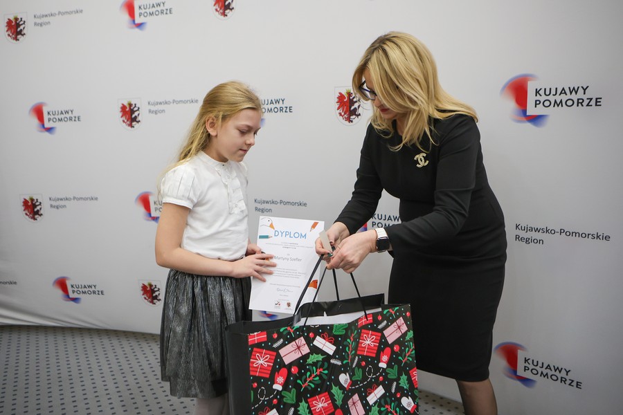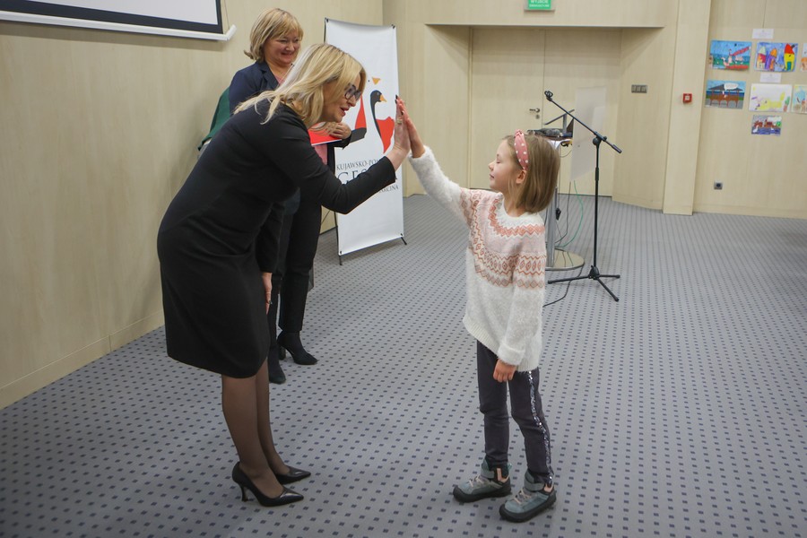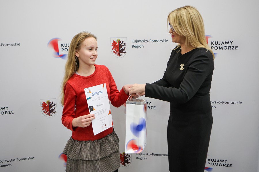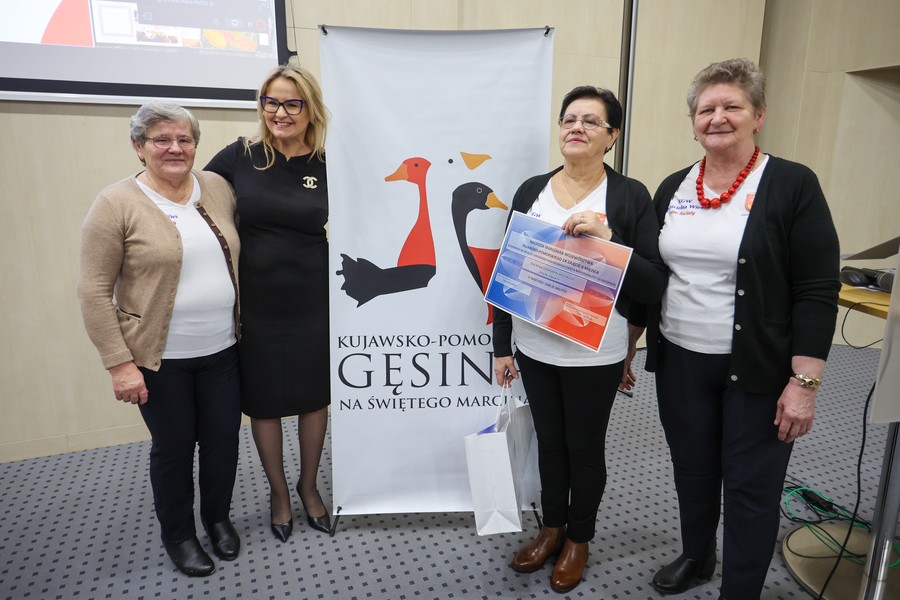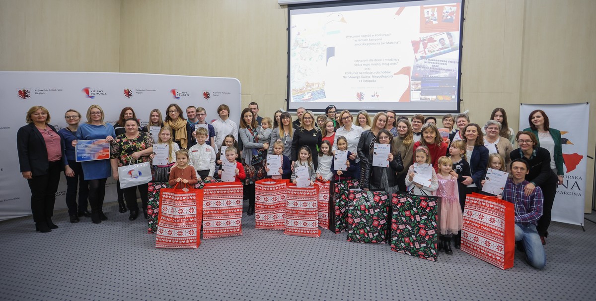Laureaci naszych dwóch dorocznych konkursów ogłaszanych w ramach akcji ,,Kujawsko-Pomorska gęsina na świętego Marcina”, odebrali w piątek (9 grudnia) nagrody w Urzędzie Marszałkowskim w Toruniu. Ze zwycięzcami i wyróżnionymi w konkursie plastycznym dla dzieci i młodzieży ,,Gąska odwiedza moje miasto, moją wieś” oraz w rodzinnym konkursie na relację ze wspólnego celebrowania dnia 11 listopada przy gęsinie spotkała się członek zarządu województwa Aneta Jędrzejewska. Zdjęcia z uroczystości tutaj.
