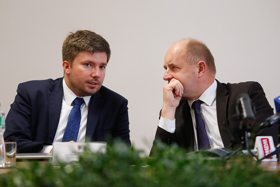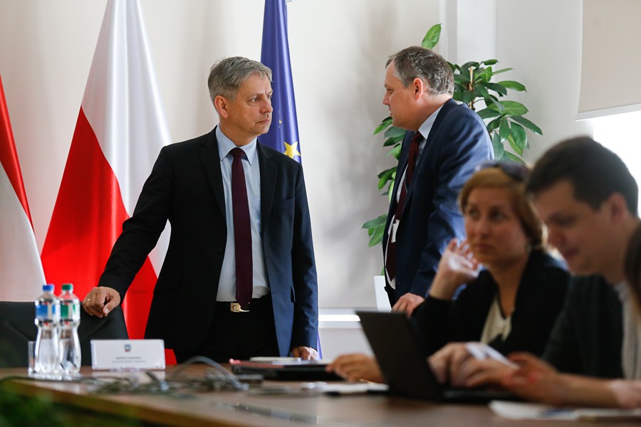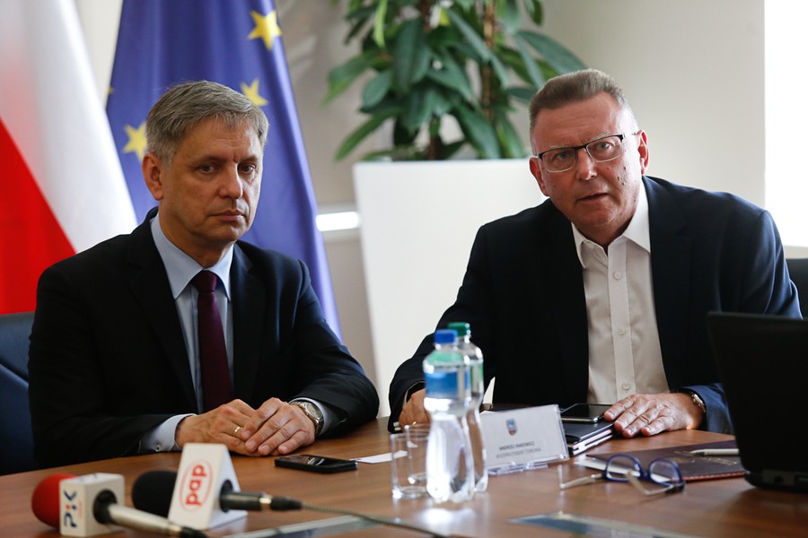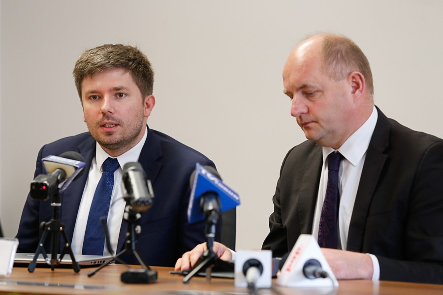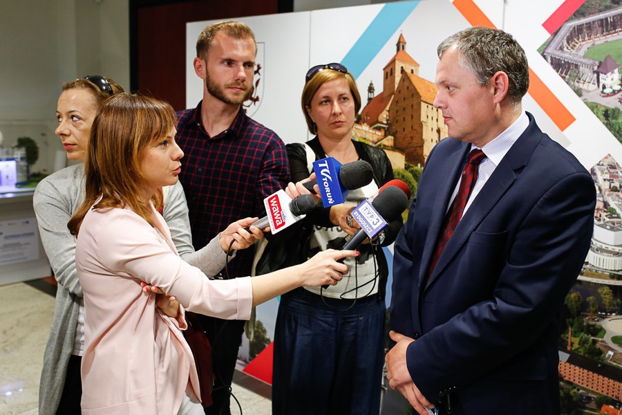 Konferencja prasowa marszałka województwa poświęcona połączeniom lotniczym do Lwowa, fot. Mikołaj Kuras dla UMWKP