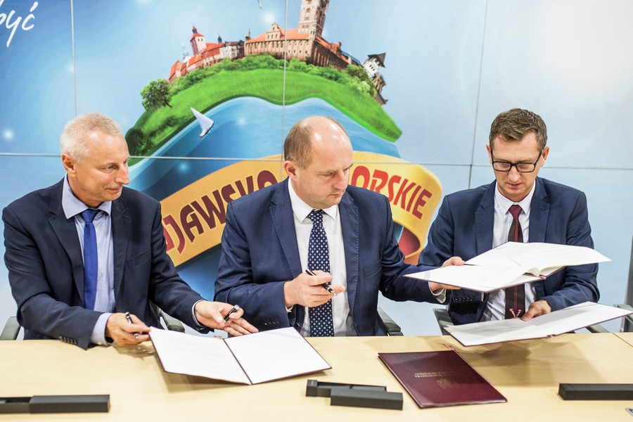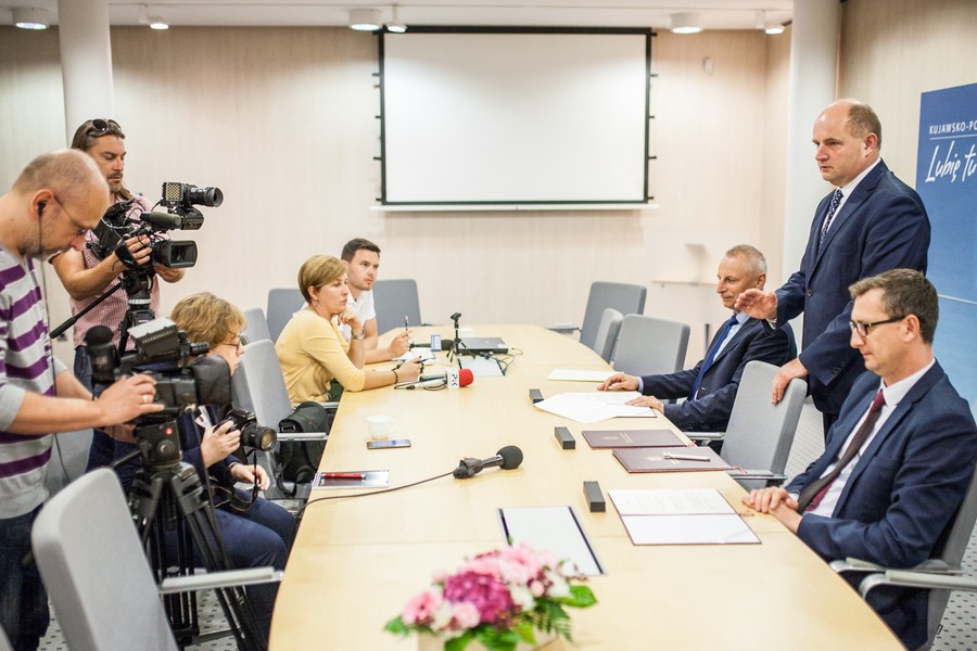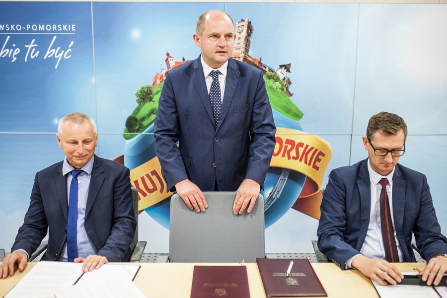 Samorząd województwa kujawsko-pomorskiego, władze Inowrocławia oraz PKP S.A. będą wspólnie działać na rzecz realizacji projektu przebudowy ulicy Magazynowej w Inowrocławiu. W poniedziałek (22 sierpnia) w Urzędzie Marszałkowskim zawarto porozumienie w tej sprawie, które przewiduje zaliczenie trasy do kategorii dróg wojewódzkich. Zmiana zarządcy drogi umożliwi miastu pozyskanie wsparcia na realizację inwestycji ze środków Regionalnego Programu Operacyjnego Województwa Kujawsko-Pomorskiego.