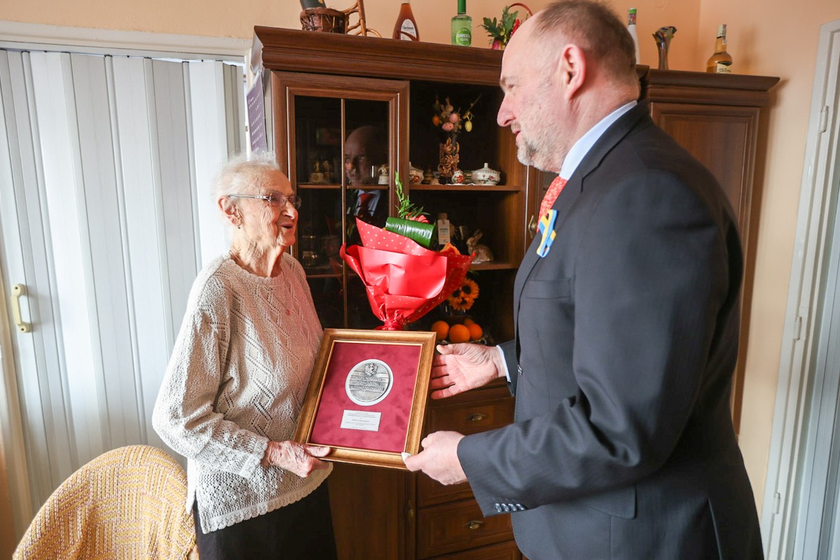 - Urodzinowa wizyta u stuletniej pani Wiktorii Montewskiej, fot. Szymon Zdziebło/tarantoga.pl dla UMWKP