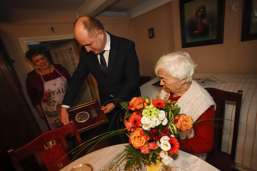 Leopolda Witkowska, stuletnia mieszkanka Bierzgłowa w powiecie toruńskim odebrała we wtorek (19 listopada) z rąk marszałka Piotra Całbeckiego medal Unitas Durat Palatinatus Cuiaviano-Pomeraniensis. Wręczenie medalu było kontynuacją naszej akcji honorowania stuletnich i starszych mieszkańców regionu, zapoczątkowaną w ubiegłym roku z okazji stulecia odzyskania przez Polskę niepodległości.