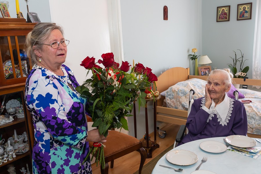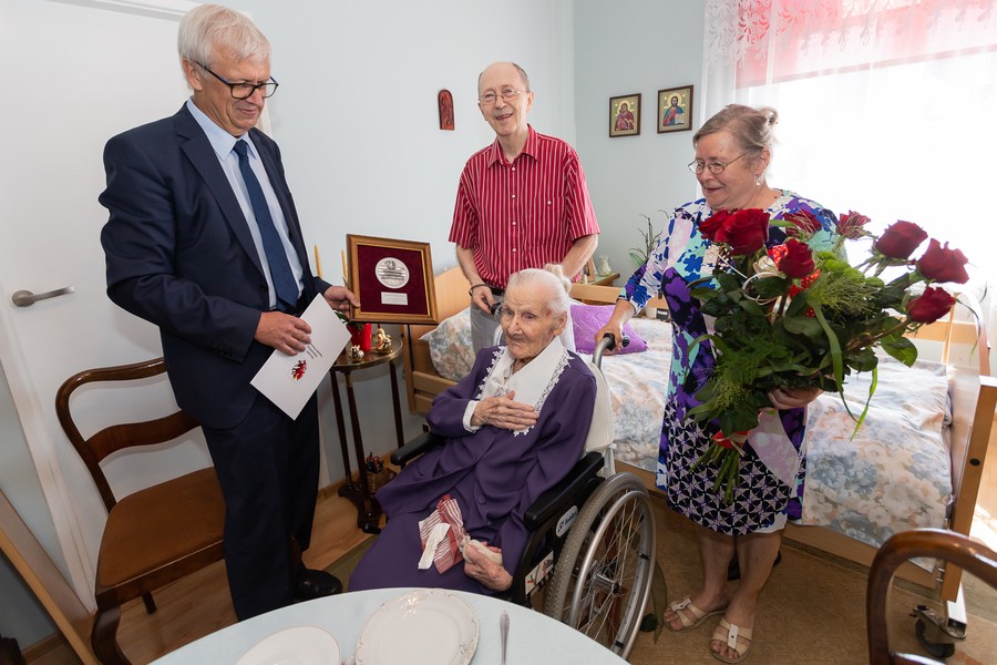 Marszałkowski medal wręczył nestorce radny województwa Leszek Pluciński.