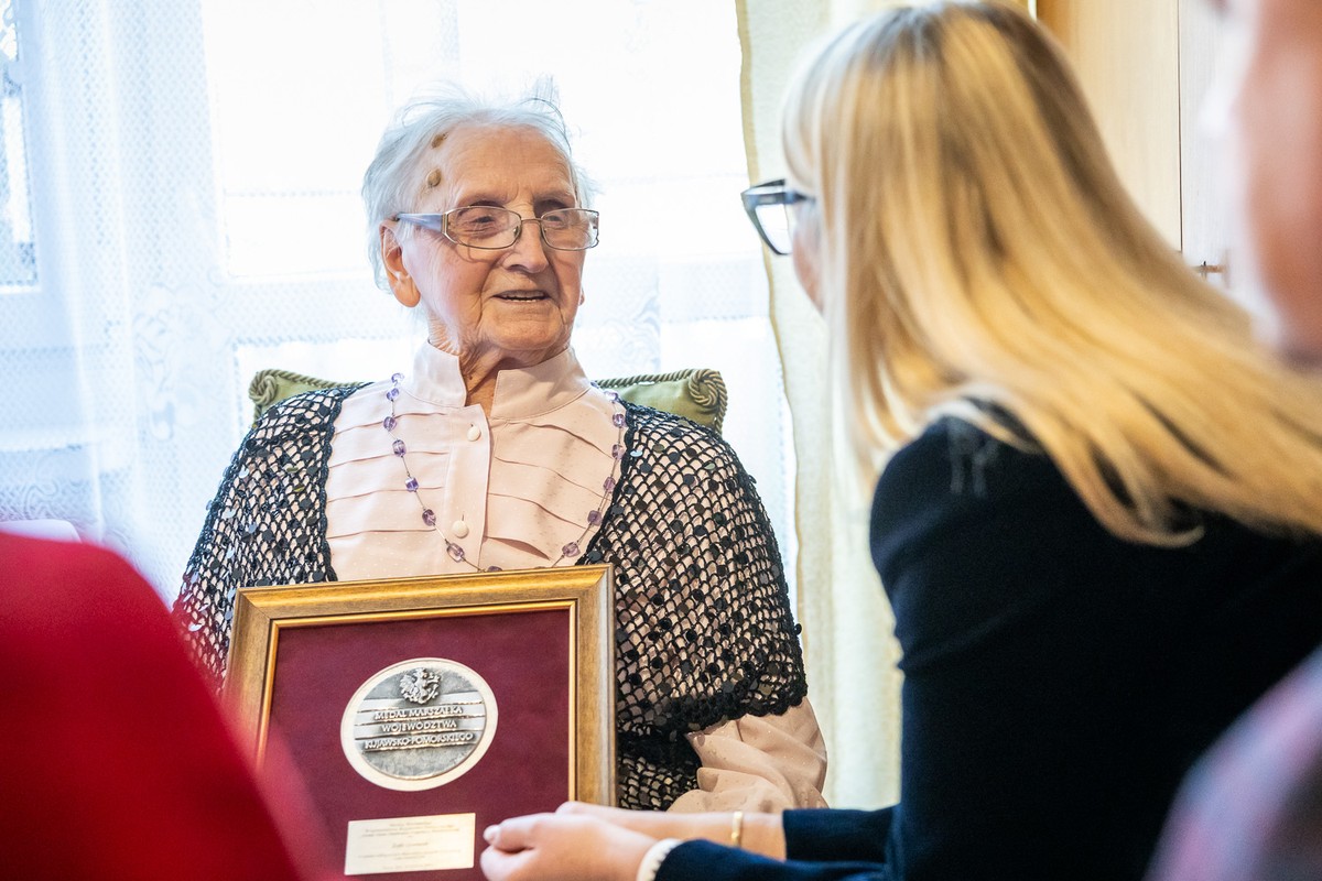 Ich dzieciństwo przerwała wojna, która wymusiła wczesne wejście w dorosłość. Przeżyły  przymusową pracę, trudną codzienność, by po wojnie budować szczęśliwe życie rodzinne. Stuletnim mieszkankom regionu Weronice Bieńkowskiej, Weronice Wiśniewskiej, Irenie Skoniecznej i Zofii Gontarek medale marszałka Unitas Durat Palatinatus Cuiaviano-Pomeraniensis wręczyli wicemarszałek Aneta Jędrzejewska, członek zarządu  województwa Marek Wojtkowski, wiceprzewodniczący sejmiku województwa Przemysław Sznajdrowski i radny województwa Paweł Zgórzyński.