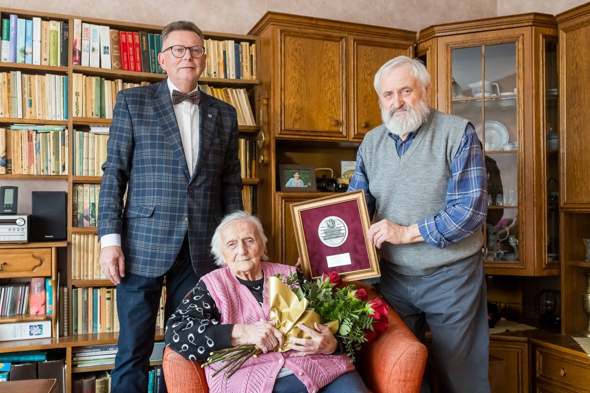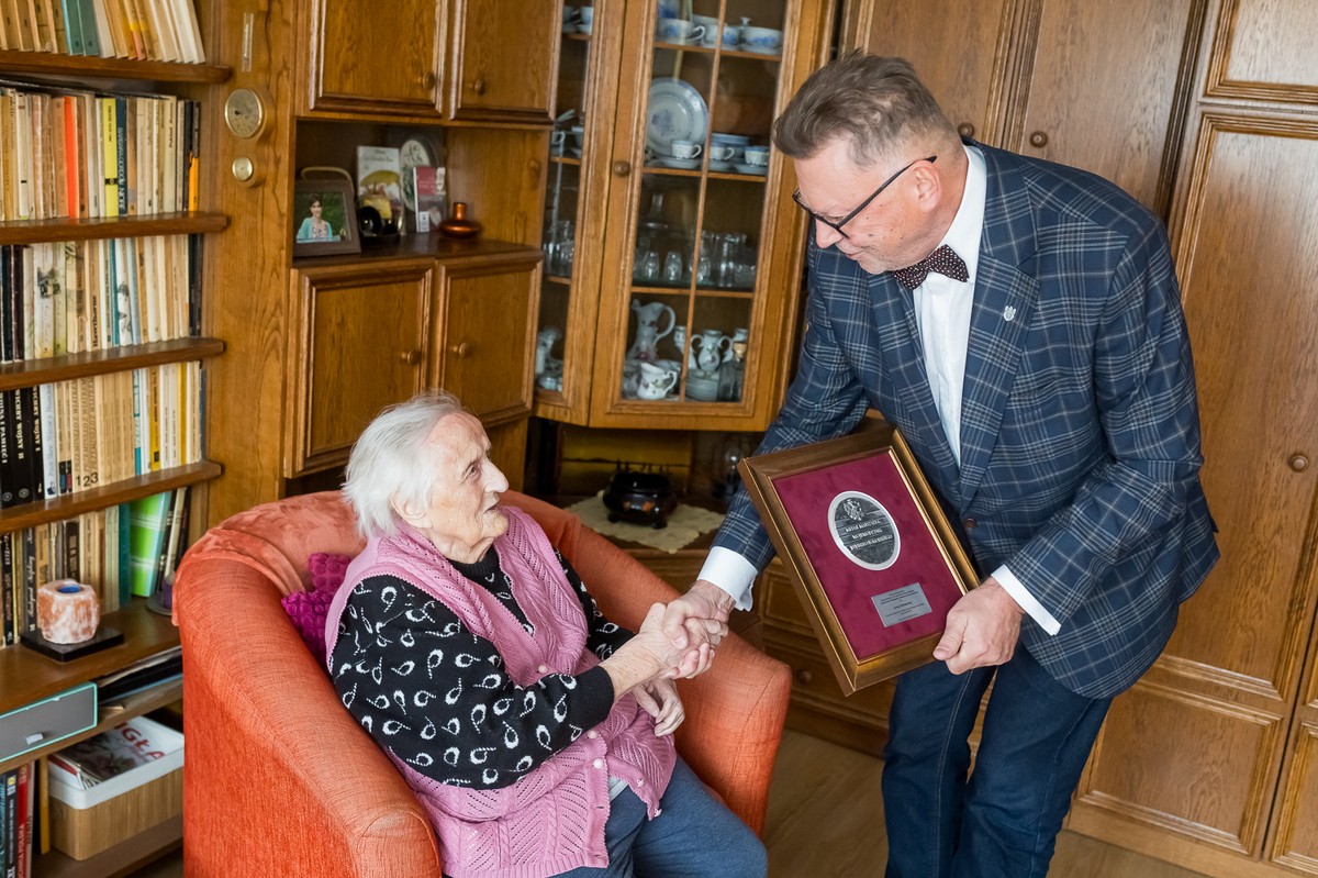 Wicemarszałek województwa Zbigniew Ostrowski odwiedził w piątek (15 listopada) w Bydgoszczy Janinę Wiśniewską i Irenę Reszkowską, którym z okazji setnych urodzin wręczył Medale Marszałka Unitas Durat Palatinatus Cuiaviano-Pomeraniensis. Nestorki z uśmiechem odebrały również życzenia i piękne kwiaty.