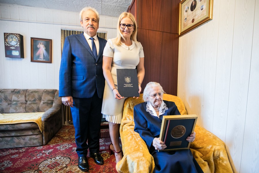 Z okazji przypadającej w tym roku setnej rocznicy odzyskania przez Polskę niepodległości honorujemy, mieszkające w województwie kujawsko-pomorskim, osoby urodzone w 1918 roku i wcześniej. W ubiegły czwartek (20 września) medal Unitas Durat Palatinatus Cuiaviano-Pomeraniensis członek zarządu województwa Aneta Jędrzejewska wręczyła Helenie Barcz z miejscowości Rybiny (powiat radziejowski) i Irenie Skierskiej z Tłuchowa (powita lipnowski).
