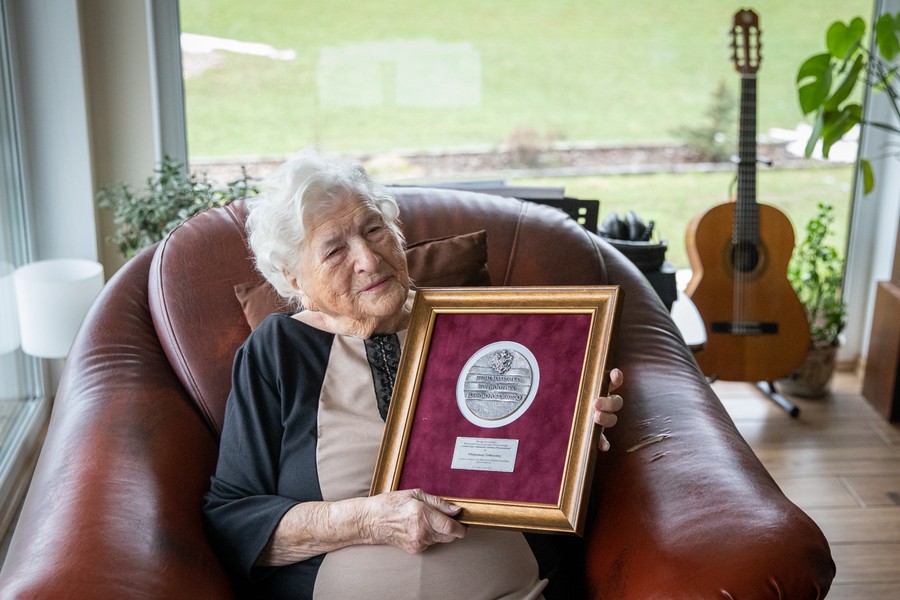 Władysława Ziółkowska urodziła się w Kole (województwo wielkopolskie), gdzie przez lata pomagała w piekarni, którą prowadził jej ojciec. Po wybuchu drugiej wojny światowej rodzinny interes został zajęty przez okupanta, a po jej zakończeniu rodzina nie była w stanie go dłużej utrzymać. Przenieśli się do krewnych w Łodzi. Z miastem tym pani Władysława związana był przez większość swojego życia, tam poznała swojego męża, pana Stanisława, który pochodził z rodziny o cukierniczych tradycjach. Przez lata małżonkowie prowadzili cukiernię, którą z czasem przejął ich syn. Zakład funkcjonował do 2011 roku. Zabytkowy sprzęt, który służył rodzinie do przygotowywania wypieków, można dziś podziwiać w Starym Młynie w Grucznie (powiat świecki). Dwa lata temu pani Władysława wspólnie z opiekującym się nią synem przeniosła się do naszego regionu i zamieszkała w Borach Tucholskich. Swoje setne urodziny świętowała 30 maja ubiegłego roku. Medal marszałka otrzymała w poniedziałek (1 marca) z rąk przewodniczącej sejmiku województwa Elżbiety Piniewskiej.