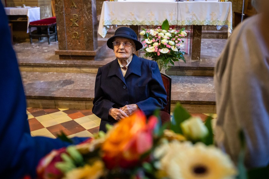 Pani Zofia odebrała medal z rąk członków zarządu województwa Anety Jędrzejewskiej i Sławomira Kopyścia podczas uroczystej mszy świętej w intencji nestorki, która odbyła się w czwartek (4 czerwca) w Kowalu w powiecie włocławskim. W uroczystości udział wzięli burmistrz Kowala Eugeniusz Gołembiewski oraz starosta włocławski Roman Gołębiewski.