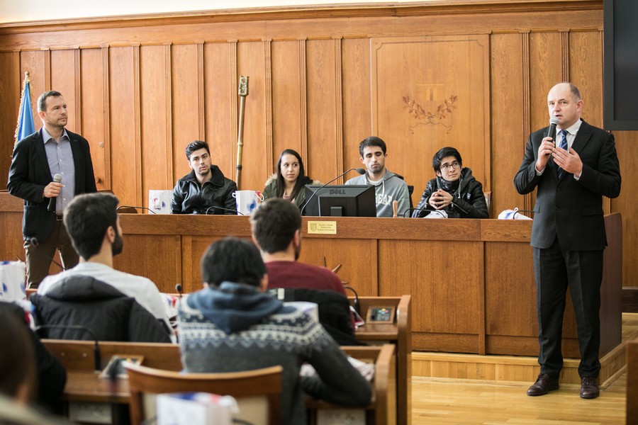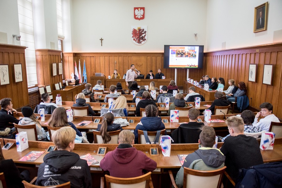 W ramach Międzynarodowych Dni Młodzieży w Kujawsko-Pomorskiem czterystu młodych ludzi poznaje polską i regionalną historię, kulturę i tradycję. Przez blisko tydzień uczestniczą w warsztatach, prelekcjach i wycieczkach po regionie. W piątek (26 października) nasi młodzi goście odwiedzili Urząd Marszałkowski i spotkali się z marszałkiem Piotrem Całbeckim.