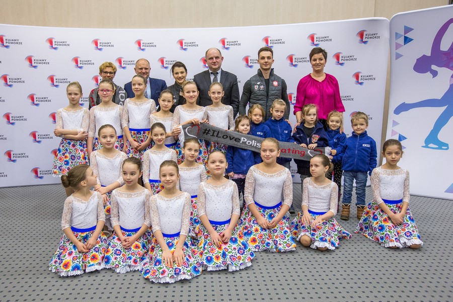 Podczas występów na igrzyskach olimpijskich nasi łyżwiarze będą promować województwo kujawsko-pomorskie. Dziś w Urzędzie Marszałkowskim oficjalnie pożegnaliśmy ich przed wyjazdem do Pjongczang. W spotkaniu z zawodnikami w Urzędzie Marszałkowskim uczestniczyli marszałek Piotr Całbecki, prezes Polskiego Związku Łyżwiarstwa Figurowego Marek Kaliszek, prezes klubu MKS Monika Szelc, trenerka olimpijczyków Sylwia Nowak-Trębacka oraz dzieci ze szkółki łyżwiarskiej MKS Axel. Sportowcy odebrali z rąk gospodarza regionu flagę województwa, którą zabiorą ze sobą na igrzyska. Przekazali też samorządowym władzom województwa oficjalną maskotkę igrzysk, szal promujący łyżwiarstwo figurowe oraz zdjęcie i łyżwy z autografem. Para wystąpi w Pjongczang 19 i 20 lutego.