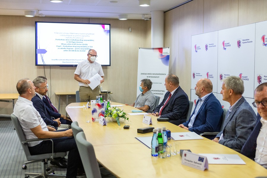 W podpisaniu umowy udział wzięli dziś marszałek Piotr Całbecki, wicemarszałek Zbigniew Sosnowski, radni sejmiku województwa Tadeusz Pogoda i Paweł Zgórzyński, starosta rypiński Jarosław Sochacki, wójt gminy Skrwilno Dariusz Kolczyński, a także dyrektor Zarządu Dróg Wojewódzkich w Bydgoszczy Przemysław Dąbrowski, dyrektor Departamentu Infrastruktury Drogowej Mirosław Graczyk i wiceprezes Przedsiębiorstwa Robót Drogowych z Lipna Stanisław Detmer.