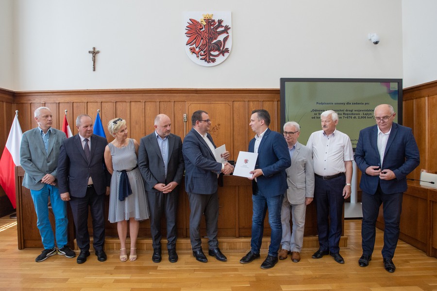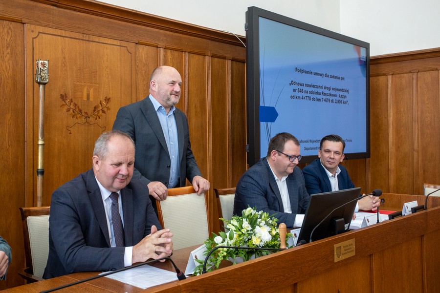 Wkrótce rozpocznie się kolejny etap gruntownej modernizacji drogi wojewódzkiej nr 546 łączącej Łubiankę ze Złąwsią Wielką w powiecie toruńskim. Trasa zyska nową nawierzchnię, przebudujemy przystanki autobusowe i chodniki. Inwestycja jest finansowana z budżetu samorządu województwa. W poniedziałek (10 lipca) w Urzędzie Marszałkowskim podpisaliśmy umowę z wykonawcą prac budowlanych. W ciągu miesiąca duże prace ruszą także na drodze wojewódzkiej nr 254 z Łabiszyna do Barcina (powiat żniński). Zadanie o wartości blisko 50 mln zł realizujemy wykorzystując m.in. nasze środki unijne z Regionalnego Programu Operacyjnego.