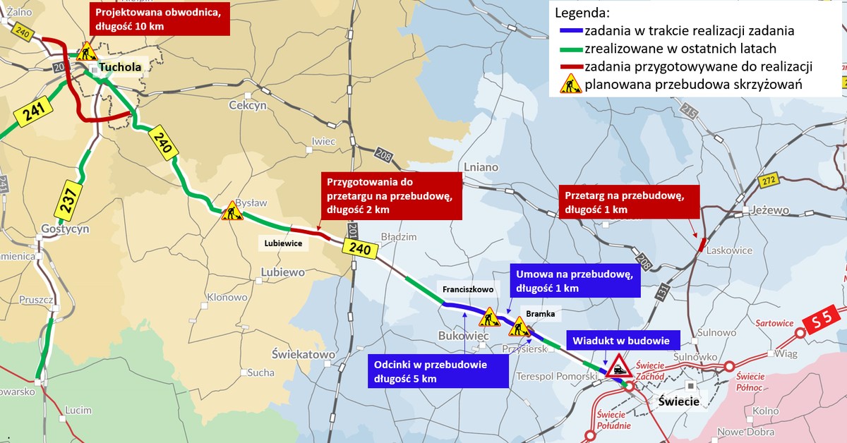 - Franciszkowo-Bramka na drodze wojewódzkiej nr 240 (powiat świecki, długość 1 km, wartość zadania 1,99 mln zł, wykonawca: Strabag z Pruszkowa),