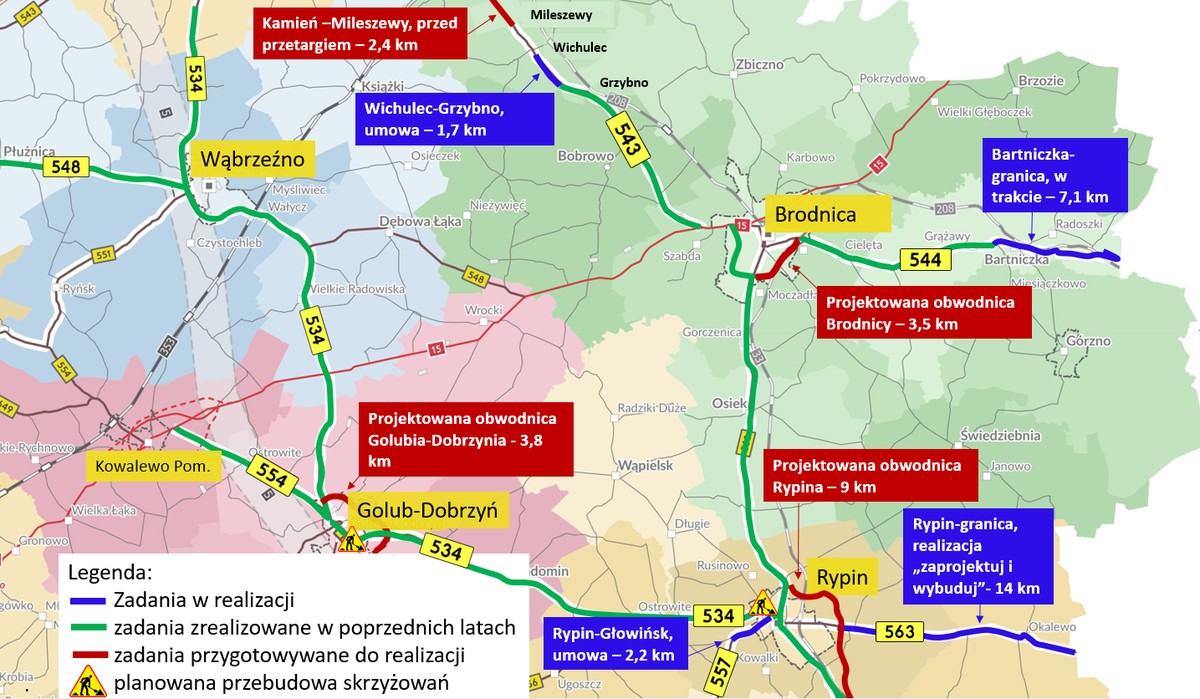 - Wichulec-Grzybno na drodze wojewódzkiej nr 543 (powiat brodnicki, długość 1,1 km, wartość zadania 1,59 mln zł, wykonawca: PRD Drobud z Wąbrzeźna).