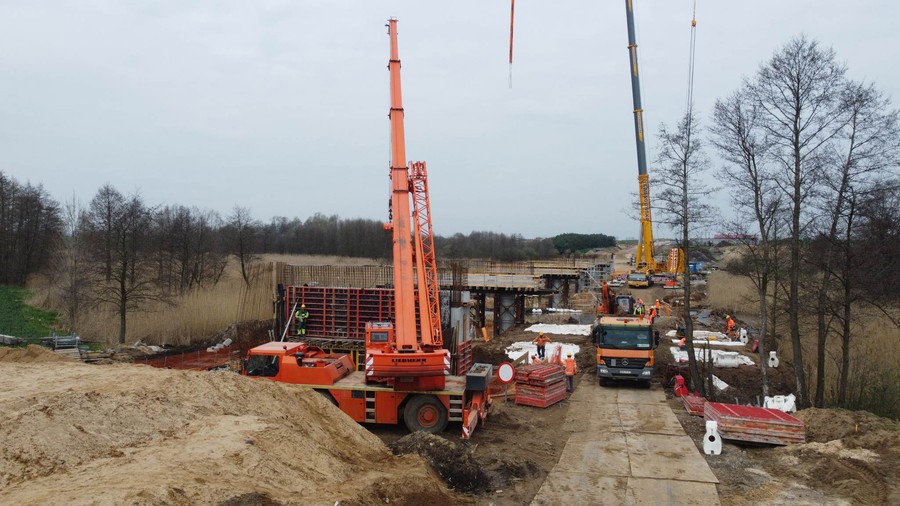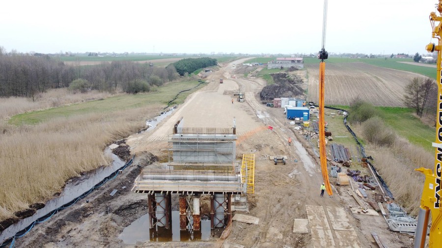 Nowy most w ciągu obwodnicy powstaje na południe od Lubrańca pomiędzy miejscowościami Borek i Brzezina. Będzie to pięcioprzęsłowy most o długości blisko 140 metrów. Wykonawca – toruńska spółka Onde – wybudowała już przyczółki oraz podpory. Z końcem kwietnia zamontowane zostały żelbetowe belki, na których teraz wykonywana będzie płyta z jezdnią.