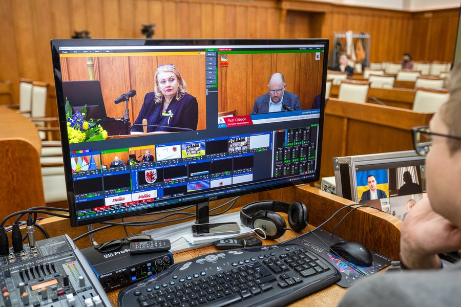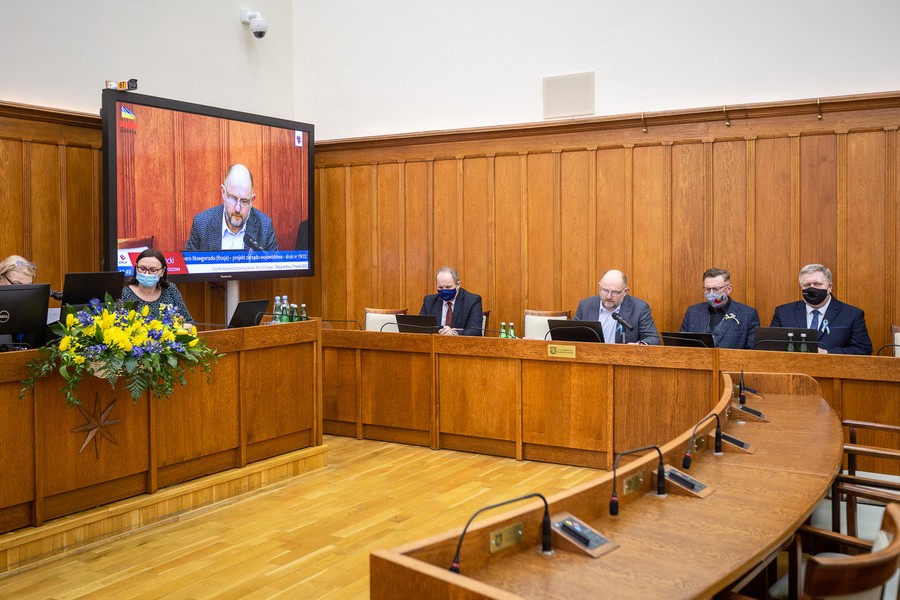 fot.: Позачергове засідання сейміку щодо розірвання міжнародних договорів з російськими новгородською та смоленською областями, а також білоруською могилевською областю, fot. Szymon Zdziebło/tarantoga.pl dla UMWKP