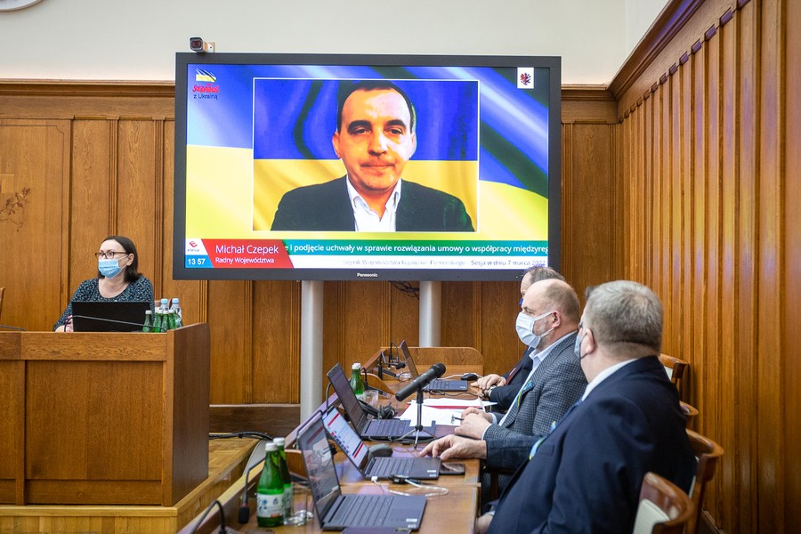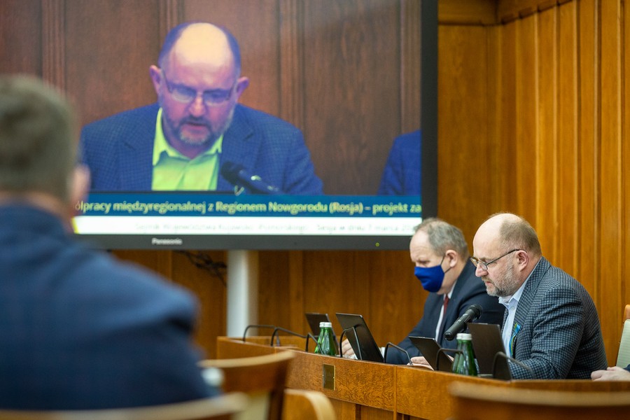 Rozwiązaniem umów o współpracy międzyregionalnej z rosyjskimi obwodami nowgorodzkim i smoleńskim oraz białoruskim obwodem mohylewskim zakończyła się kolejna nadzwyczajna sesja sejmiku województwa związana z wojną toczącą się za wschodnią granicą naszego kraju. Stanowiska w tej sprawie zostały przyjęte przez aklamację. Solidarni z Ukrainą