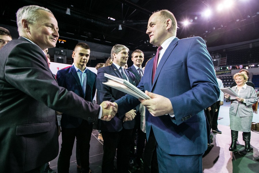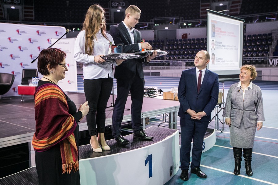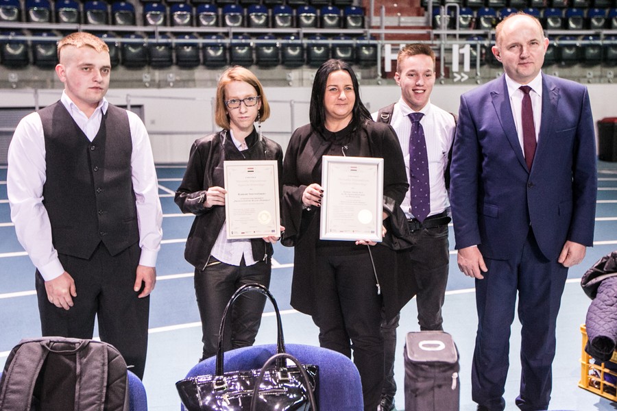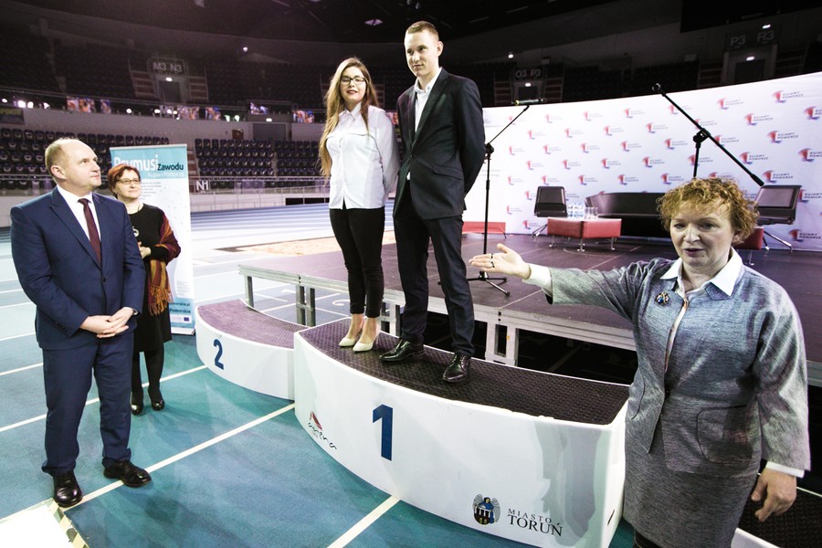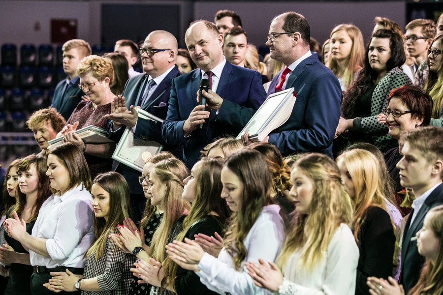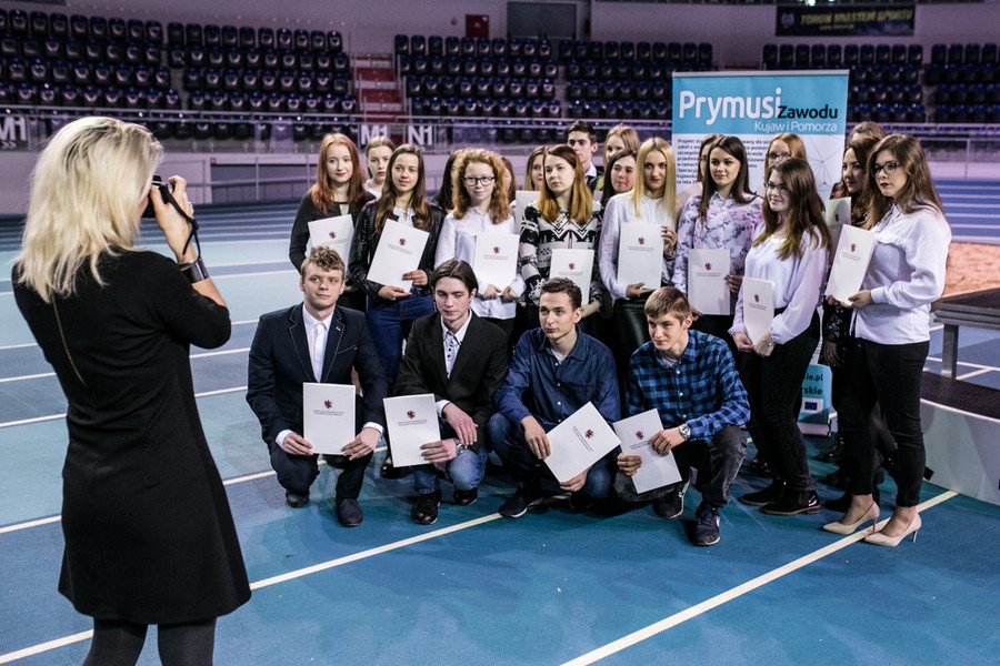 Podczas wtorkowej konferencji „Kształcenie zawodowe wobec oczekiwań lokalnego rynku pracy” w hali sportowo-widowiskowej przy ulicy Bema w Toruniu stypendyści podpisali umowy stypendialne, odebrali też z rąk marszałka Piotra Całbeckiego certyfikaty za wybitne osiągnięcia edukacyjne. Statuetki „Prymusi Zawodu Kujaw i Pomorza” otrzymali nasi najlepsi stypendyści: Agnieszka Michalska z Zespołu Szkół Nr 3 im. Bogdana Chełmickiego w Rypinie (najlepsza stypendystka w kategorii technikum) oraz Wiktor Wiechecki z Zespołu Szkół Ponadgimnazjalnych nr 5 im. gen. Władysława Sikorskiego w Inowrocławiu (najlepszy stypendysta w kategorii szkoła zawodowa). Certyfikaty z gratulacjami odebrali też dyrektorzy szkół, do których uczęszczają stypendyści.