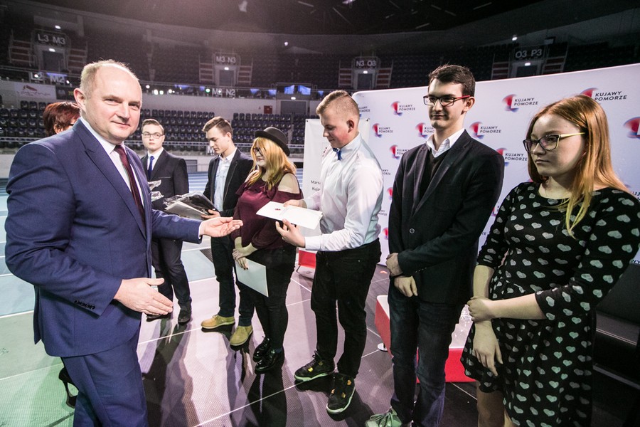 Uroczyste wręczenie stypendiów marszałka 622 uczniom techników i zasadniczych szkół zawodowych odbyło się 13 marca w hali Arena Toruń. Spotkanie z uczniami było także okazją do wyróżnienia najlepszych stypendystów i placówek edukacyjnych oraz prezentacji szkół i pracodawców z regionu.