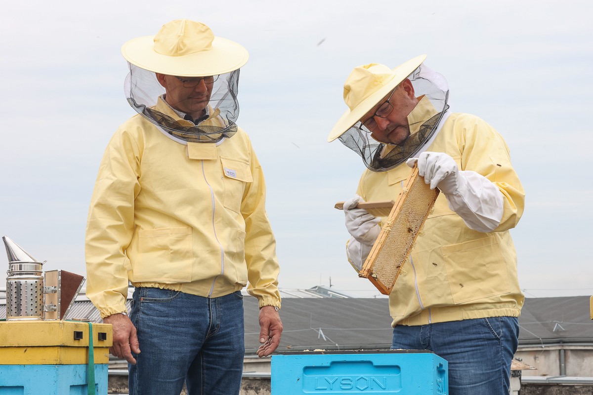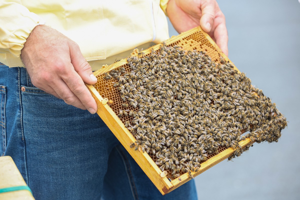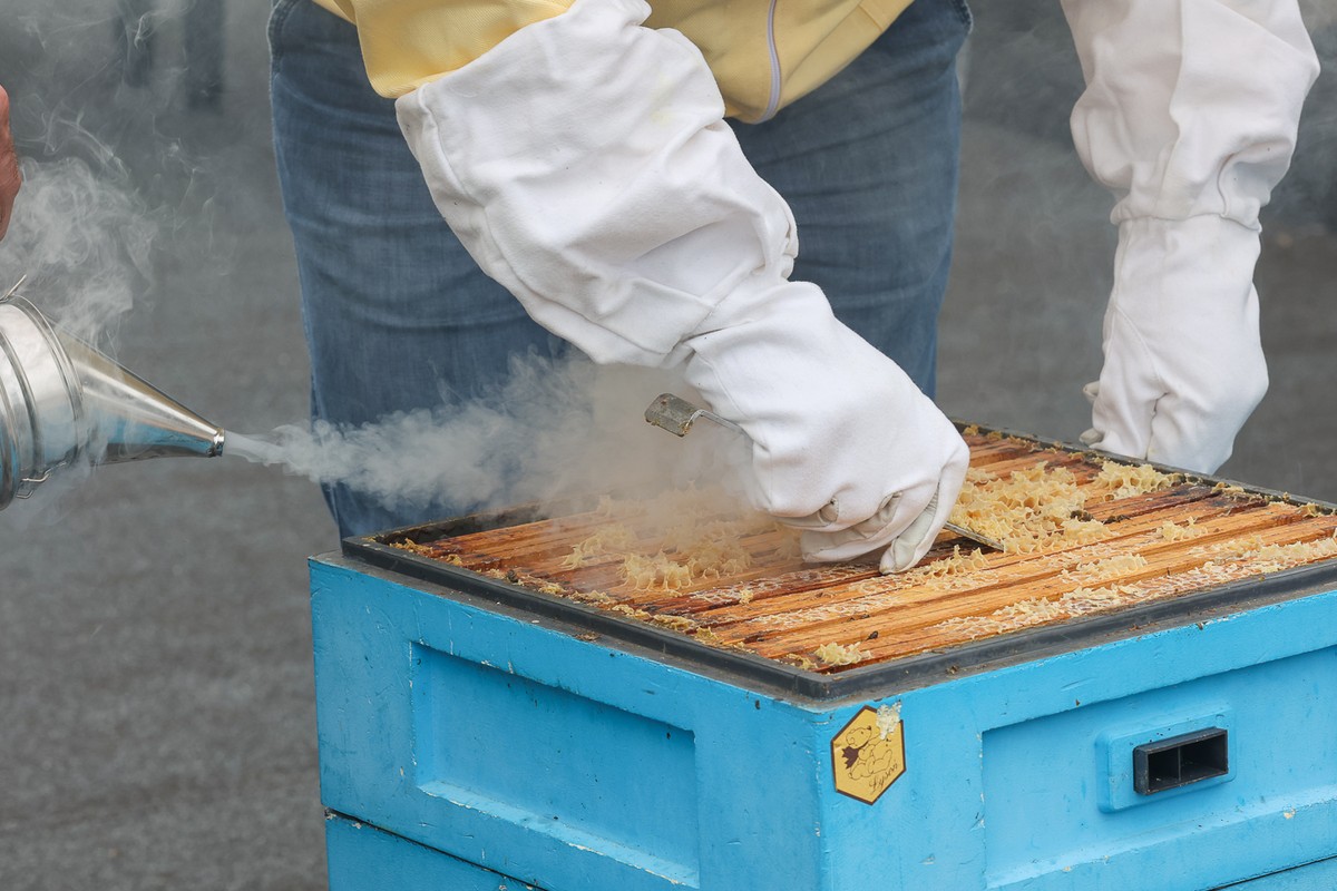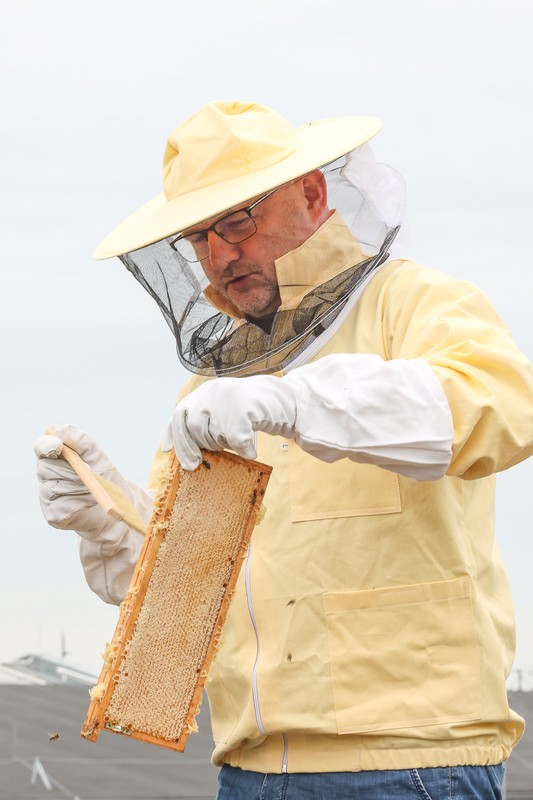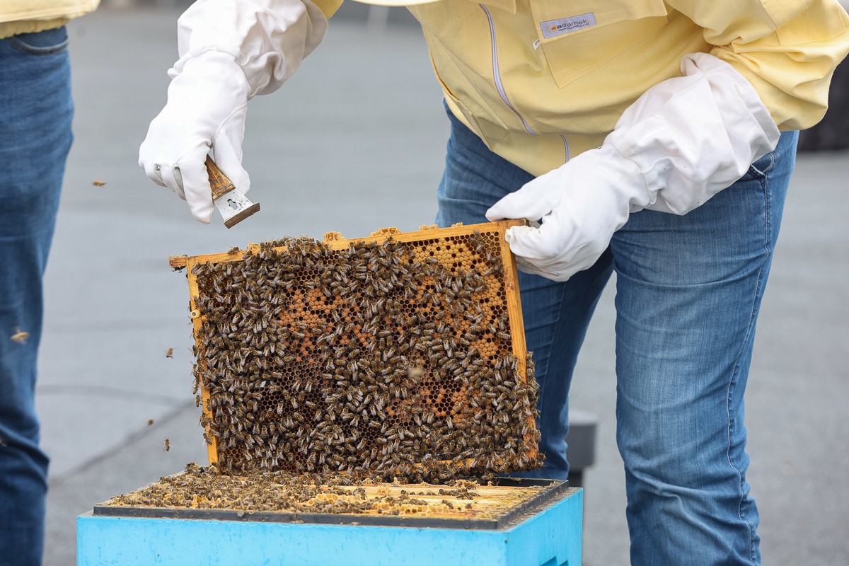 - Miodobranie na dachu Urzędu Marszałkowskiego w 2023 roku fot. Mikołaj Kuras dla UMWKP