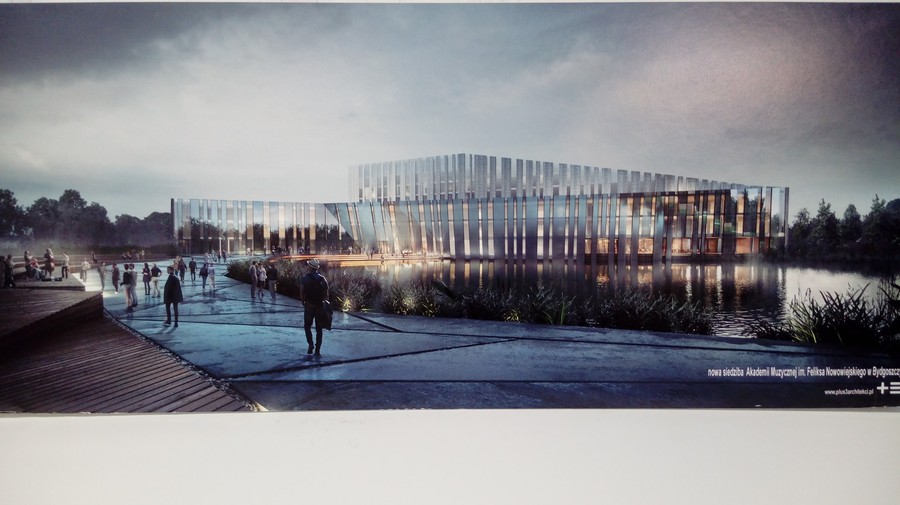 Budowa nowych obiektów AMFN, uznawanej za jedną z najlepszych polskich uczelni muzycznych, to realizacja oczekiwań bydgoskiego środowiska muzycznego. Na 3 hektarach w rejonie ulic Gdańskiej i Kamiennej powstaje interesujący pod względem architektonicznym, zlokalizowany w rejonie niewielkiego oczka wodnego i otoczony zielenią zespół budynków, które oprócz sal dydaktycznych pomieszczą także m.in. cztery sale koncertowe (największa z widownią na tysiąc osób) i dom studencki. W ośmiokondygnacyjnym gmachu głównym znajdą się 644 sale zajęć i ćwiczeń. Wszystko zostało tu zaplanowane z uwzględnieniem przyszłej funkcjonalności, niejako uszyte na miarę. Koncepcja architektoniczna powstała w warszawskiej pracowni Plus 3 Architekci.