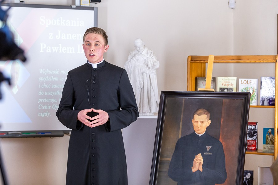 Poniedziałkowe katechezy i warsztaty online przygotowaliśmy wspólnie z Laboratorium św. Jana Pawła II przy Wydziale Teologicznym Uniwersytetu Mikołaja Kopernika w Toruniu. W programie znalazły się m.in. katecheza profesora Waldemara Rozynkowskiego z Uniwersytetu Mikołaja Kopernika, który mówił o papieskich wizytach w województwie kujawsko-pomorskim oraz wykład o Janie Pawle II i beatyfikacji księdza Stefana Wincentego Frelichowskiego, który wygłosili Michał Brzozowski i Karol Kłosowski z Wyższego Seminarium Duchownego w Toruniu. Ksiądz Dawid Wasilewski wraz z Karoliną Olszewską i Janem Wółkowskim z Laboratorium św. Jana Pawła II mówili „O Wojtyle po ludzku”. Wieczorem Teatr Szpila z I Liceum Ogólnokształcącego im. Mikołaja Kopernika w Toruniu zaprezentował poezję papieża, a na zakończenie odbył się minikoncert „Wojtyła akustycznie” w wykonaniu zespołu Z nocy w Moc. Program zajęć (18 maja).