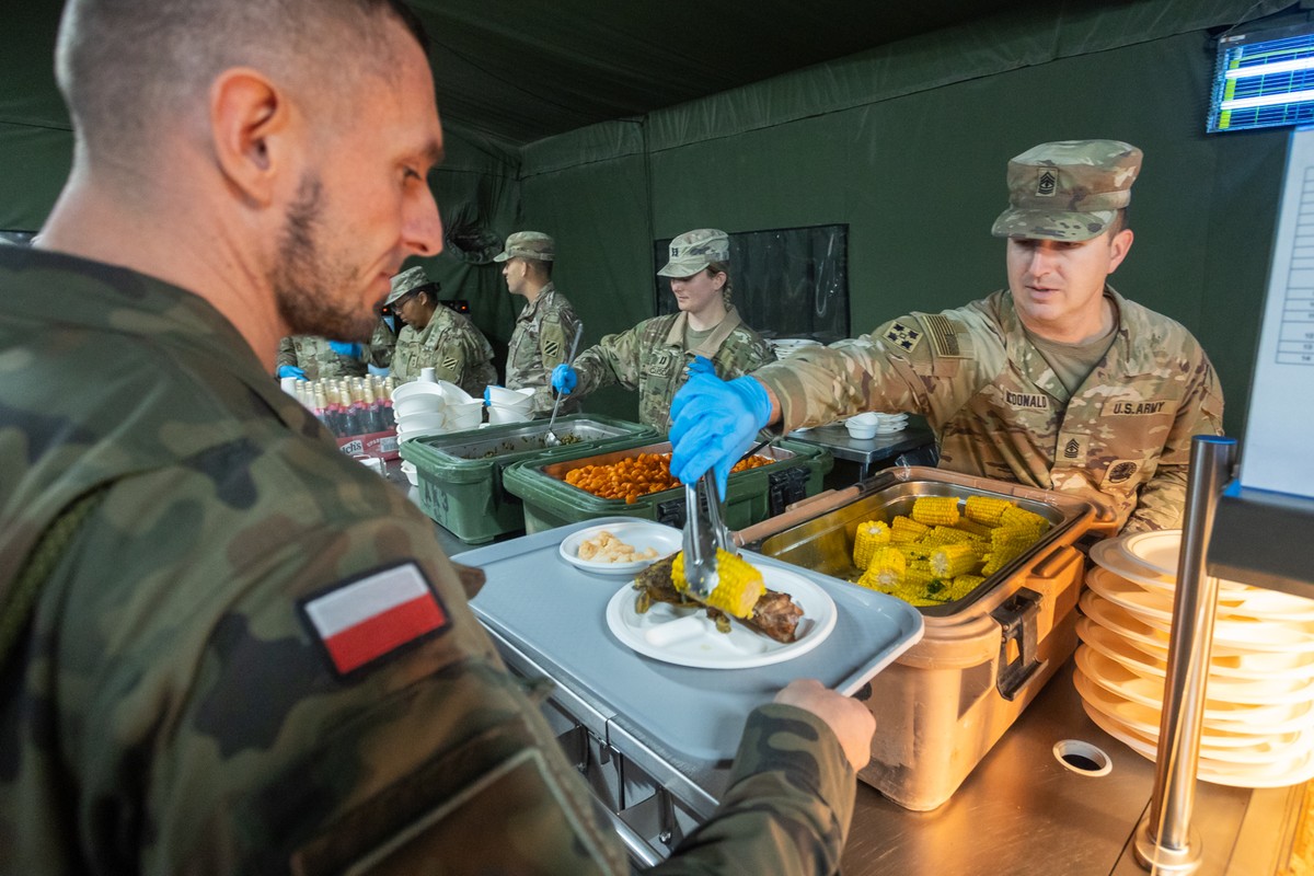 Gospodarzem spotkania był dowódca amerykańskiej brygady w Toruniu płk Matthew VanGilder. Marszałek Piotr Całbecki zjadł z żołnierzami tradycyjny świąteczny lunch złożony z pieczonego indyka, żeberek, chleba kukurydzianego i batatów z piankami marshmallows.