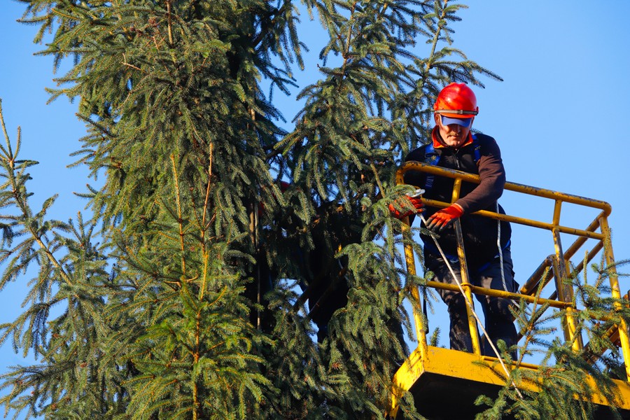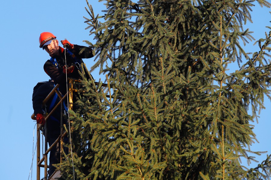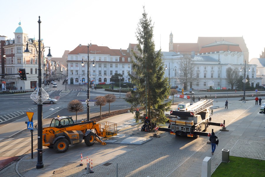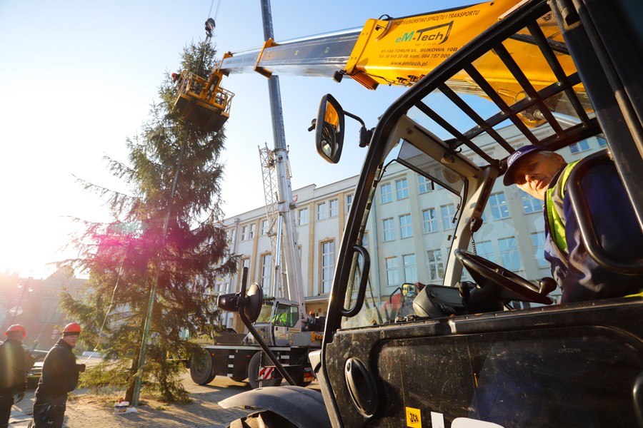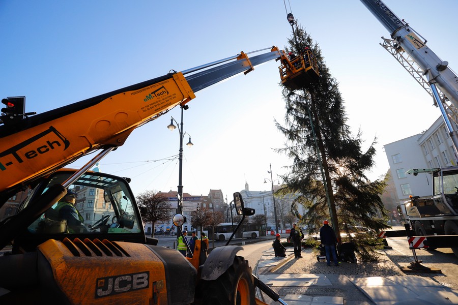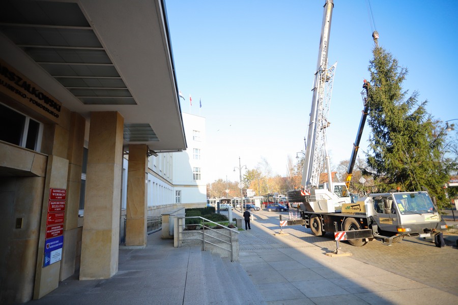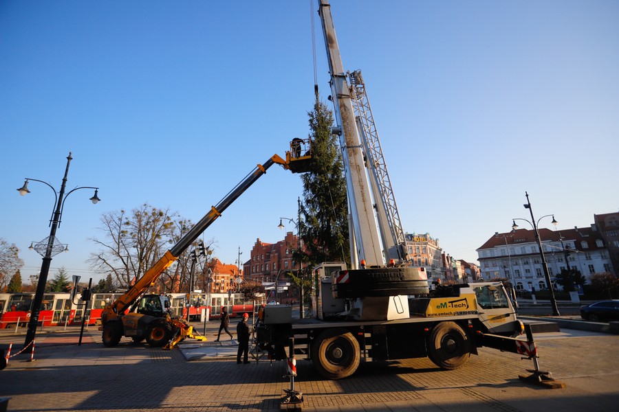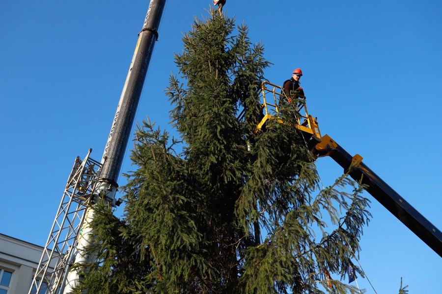 Choinka dotarła na plac przed Urzędem Marszałkowskim, fot. Mikołaj Kuras