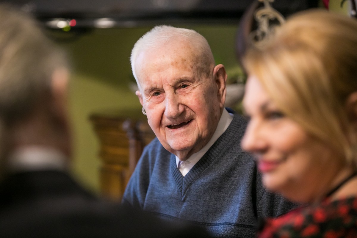- Wręczenie medalu stuletniemu Kazimierzowi Mazgajowi, fot. Andrzej Goiński/UMWKP