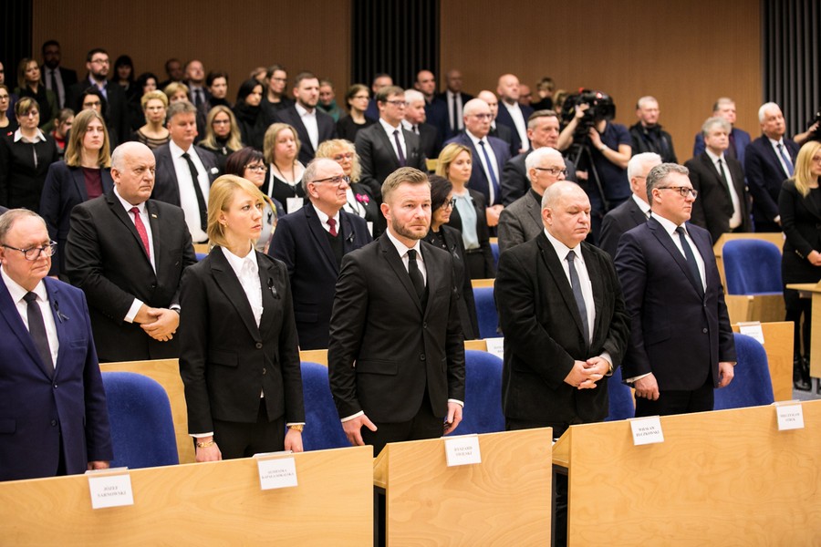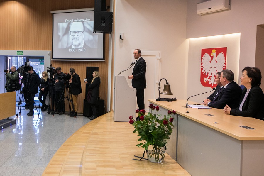 My, Sejmik Województwa Pomorskiego, wszyscy radni województwa pomorskiego, zebrani w sali im. Lecha Bądkowskiego, żegnamy dzisiaj prezydenta Gdańska Pawła Adamowicza. Żegnamy z bólem i smutkiem wybitnego pomorskiego samorządowca, autentycznego lidera gdańskiej wspólnoty. Człowieka, który całe swoje życie, od wczesnej młodości, poświęcił służbie publicznej. To za sprawą głównie Jego wizji, usilnej pracy oraz zdolności przywódczych, Gdańsk – stolica Pomorza – stał się w ciągu ostatnich dwudziestu lat prawdziwie europejską metropolią, z której jesteśmy dumni. Gdańsk stał się miastem nowoczesnym, przyjaznym mieszkańcom i gościom, dobrym miejscem do życia. Miastem Wolności i Solidarności, jak często powtarzał Paweł Adamowicz, całym swym niestrudzonym działaniem wcielając te wartości w życie.