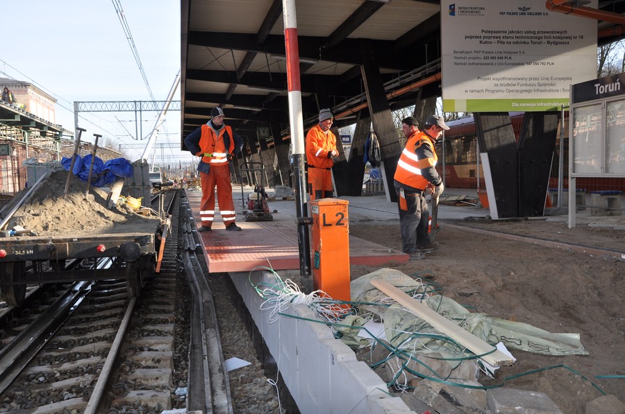 Na gruntowanie rewitalizowanym dworcu kolejowym Toruń Główna trwa budowa nowego przejścia podziemnego, ekipy wykonawcze prowadzą też zaawansowane prace modernizacyjne wewnątrz budynku głównego, oprócz tego przebudowywana jest sieć wodociągowa i kanalizacyjna w rejonie ulicy Kujawskiej. Zakończenie prac latem 2015.