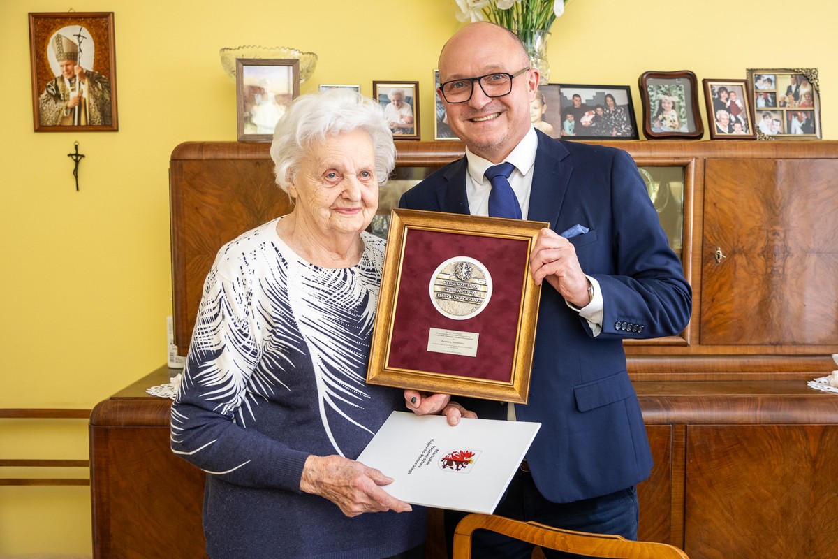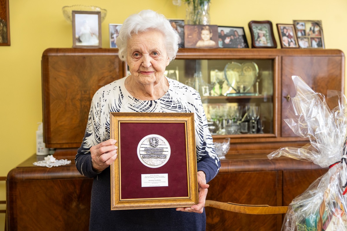 Pani Kazimiera Szarafińska z Torunia – rocznik 1924, mistrzyni nożyczek i domowej nalewki – dołączyła do grona odznaczonych medalem Unitas Durat Palatinatus Cuiaviano-Pomeraniensis. Przetrwała wojnę, przez dziesięciolecia strzygła torunian w rodzinnym zakładzie fryzjerskim, a dziś, mając 101 lat, cieszy się życiem, gra w karty i czyta lokalną prasę. Medal w uznaniu niezwykłego życia wręczył członek zarządu województwa Marek Wojtkowski.