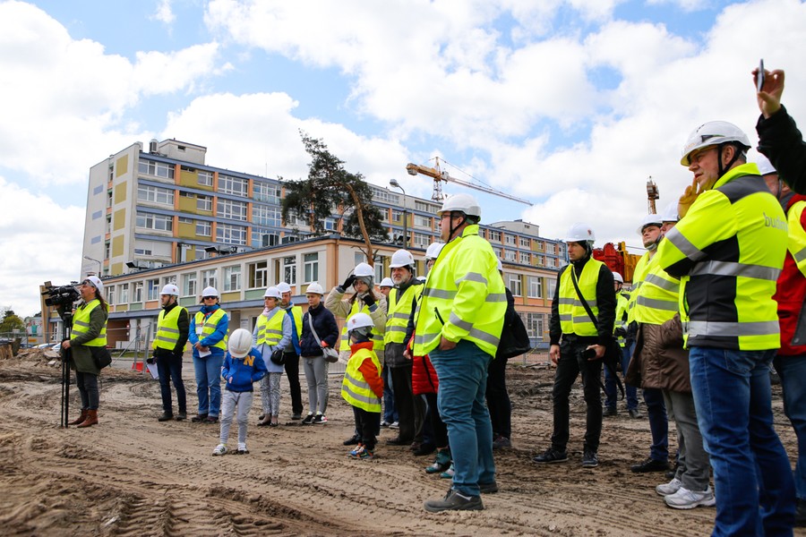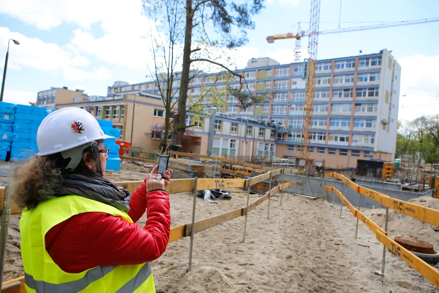 W role przewodników wcielili się inżynierowie z Budimeksu, który jest generalnym wykonawcą inwestycji. Zwiedzającym pokazaliśmy m. in. marmurową instalację z wmurowanym w nią poświęconym przez papieża Franciszka kamieniem węgielnym oraz miejsca, gdzie wznoszone są nowy główny budynek lecznicy, garaż wielopoziomowy i obiekty techniczne.