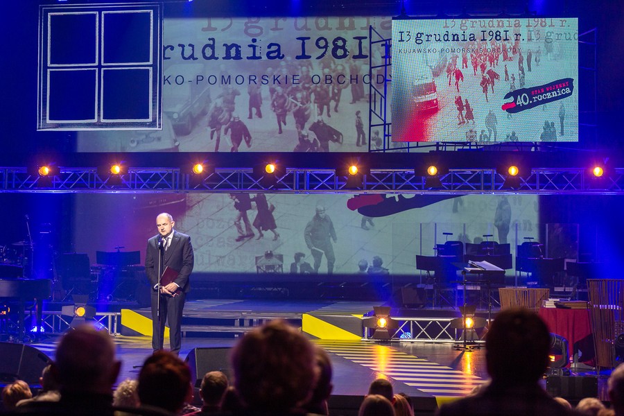 – A jednak przyszedł wiatr, co rozgonił ciemne, skłębione zasłony. Dziękujemy za Polskę, dziękuję za odwagę wszystkim ludziom wolności, ludziom Solidarności, a także ludziom kultury – mówił w trakcie wydarzenia marszałek Piotr Całbecki.
