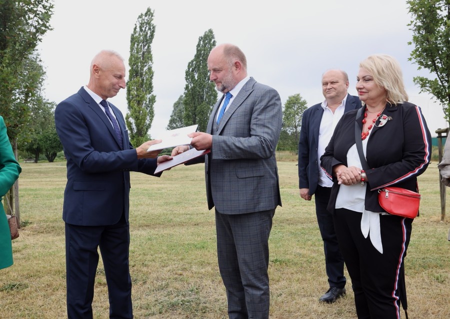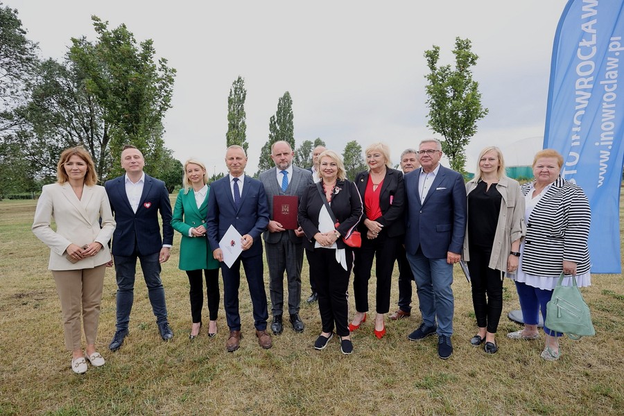 Ceremonia złożenia podpisów na dokumencie odbyła się w Inowrocławiu, na należącej do samorządu miejskiego działce przy ul. Prymasa Józefa Glempa 2, gdzie stanie budynek na potrzeby przyszłego Centrum Kultury. Budowę, której koszt szacujemy na 30 milionów złotych, sfinansujemy ze środków Funduszy Europejskich dla Kujaw i Pomorza 2021-2027, naszego programu regionalnego nowej perspektywy.