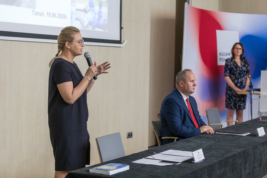 Ponad 47 milionów złotych wsparcia na inwestycje w dziedzinie gospodarki wodno-ściekowej trafi do 56 gmin (lub gminnych spółek celowych) przygotowujących się do budowy lub modernizacji ujęć i stacji uzdatniania wody, wodociągów, sieci kanalizacyjnych oraz przydomowych oczyszczalni ścieków. W piatek (19 czerwca) w Urzędzie Marszałkowskim w Toruniu odbyło się wręczenie umów na dofinansowanie projektów. W uroczystości wzięli udział wicemarszałek Zbigniew Sosnowski, członek zarządu Aneta Jędrzejewska i radny województwa Paweł Zgórzyński.