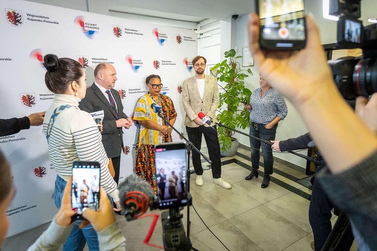 – Otwieramy rok odważnych kobiet w naszym województwie, tworzą ten region od wielu lat – mówił w czasie briefingu marszałek Piotr Całbecki. – Odważna kobieta to nie rewolucjonistka . To osoba, która zmienia świat na lepszy. Jest wiele zła na świecie, wiele zła w życiu społecznym, w naszej pracy, w naszych domach i wielu innych obszarach. Kobiety chcą i zmieniają świat na lepsze, i to nie kwestia walki płci. To jest kwestia walki dobra ze złem. Takich postaci jest wiele w naszej historii. A dziś gościmy osobę, która skupia wszystko to, co jest pragnieniem ludzi wolnych, chcących żyć w pokoju, ale też z poczuciem godności, bez względu na to, kim się jest, jakie ma się przekonania, światopogląd, wyznanie, czy jest osobą niewierzącą. Liberia to kraj, który jeszcze niedawno był obszarem wojny. Wraz z przyjaciółkami Leymah Gbowee zjednała kobiety różnych wyznań, z różnych środowisk – i wspólnie zatrzymały wojnę.
