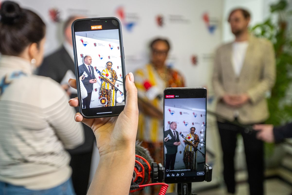 - Briefing prasowy z dr Leymah Gbowee, fot. Szymon Zdziebło