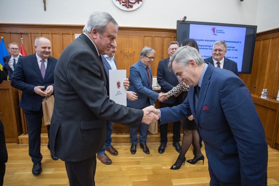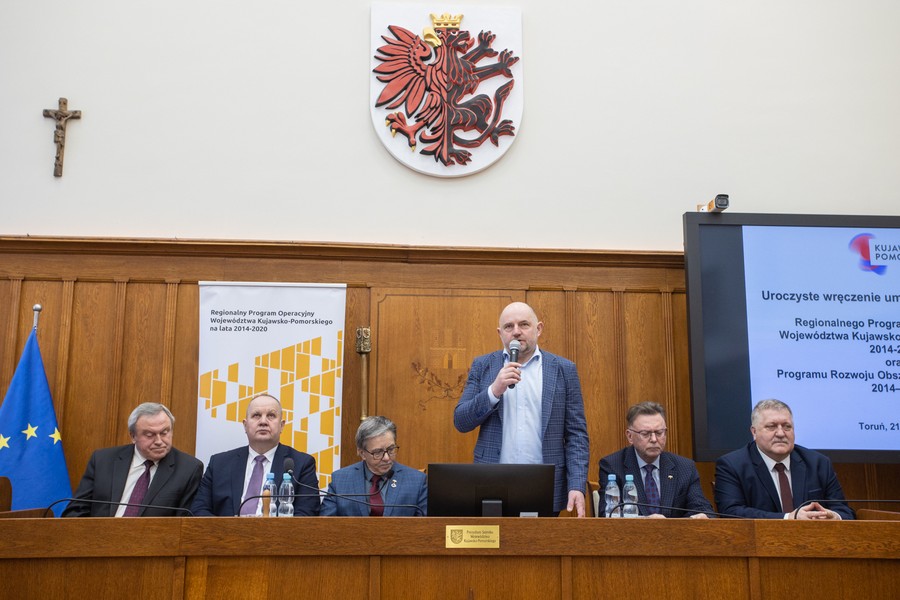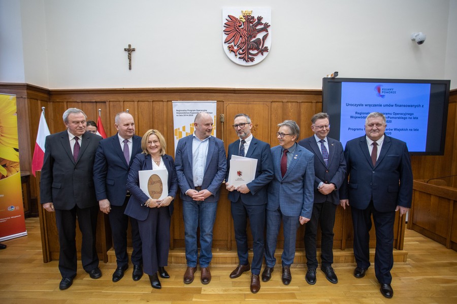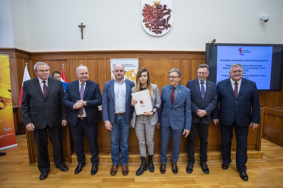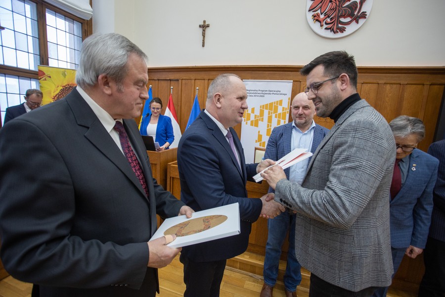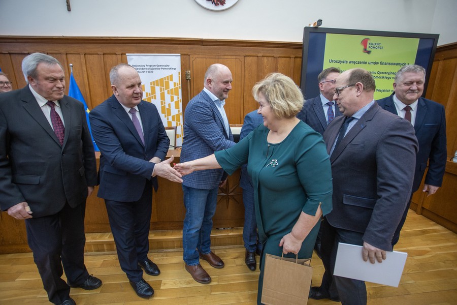 Marszałek Piotr Całbecki spotkał się we wtorek (21 lutego) z beneficjentami naszego Regionalnego Programu Operacyjnego (RPO) 2014-2020 i pozostającej w dyspozycji Urzędu Marszałkowskiego puli środków Programu Rozwoju Obszarów Wiejskich (PROW) kończącej się unijnej siedmiolatki. W ceremonii wręczenia umów o dofinasowanie projektów uczestniczyli też wicemarszałek Zbigniew Ostrowski, wicemarszałek Zbigniew Sosnowski i członek zarządu województwa Sławomir Kopyść oraz radni województwa Stanisław Pawlak i Tadeusz Pogoda. Łączna wartość przypieczętowanego dzisiaj wsparcia to ponad 5 milionów złotych. Zdjęcia do pobrania