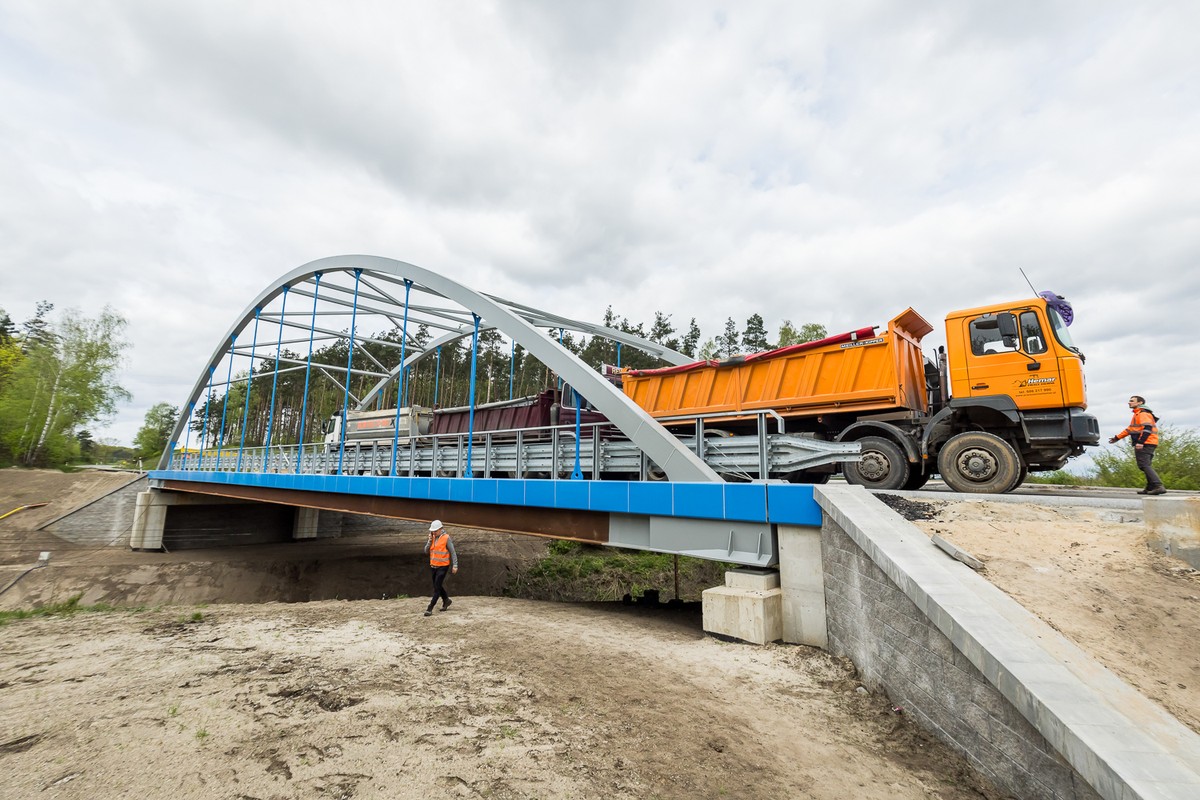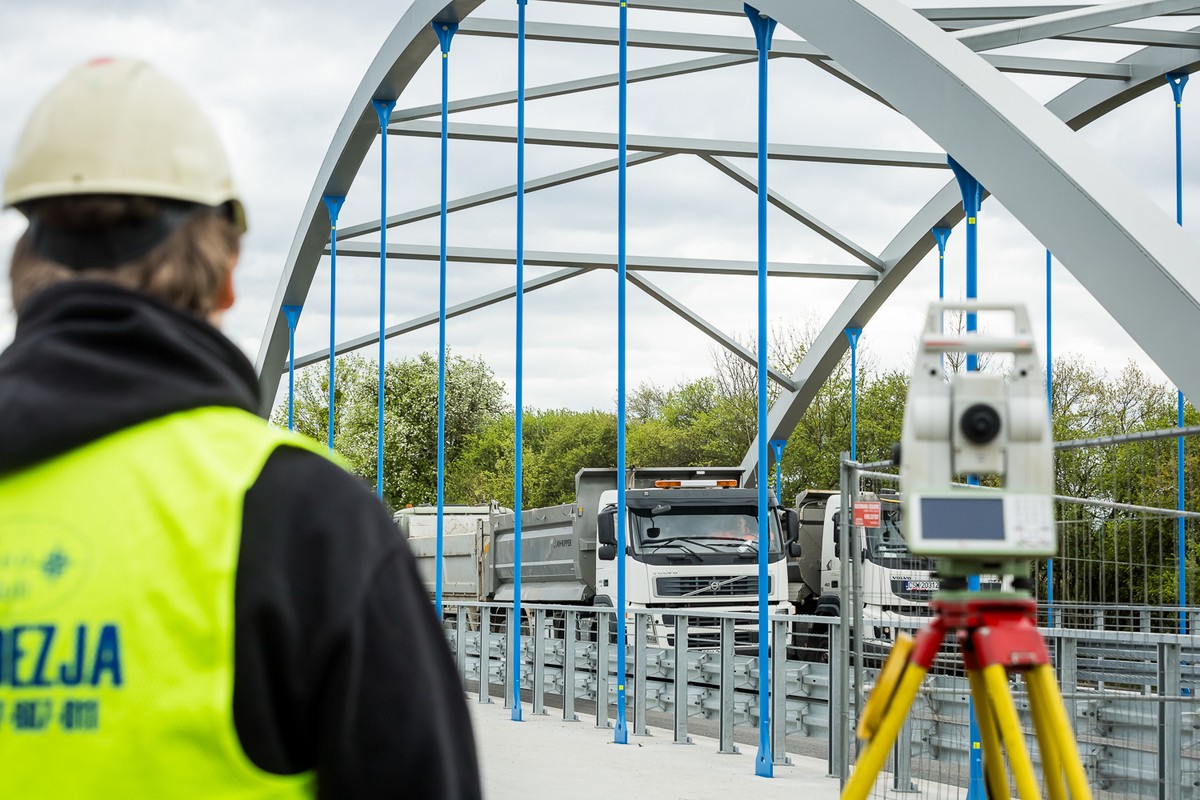 Wykonawca zrealizował już wszystkie prace konstrukcyjne, wybudował nowe przyczółki, osadził na nich pomost, zamontował łuki nośne, wykonał podbudowę z kruszywa na drogach dojazdowych i ułożył nawierzchnię na dojazdach. Konstrukcja została zabezpieczona przed korozją i pomalowana. W piątek (12 kwietnia) przeprowadzono testy obciążeniowe. Na ścieżce pieszo-rowerowej wykonane zostaną nawierzchnie z żywic. Obiekt i dojazdy zyskają także nowe oznakowanie pionowe i poziome.